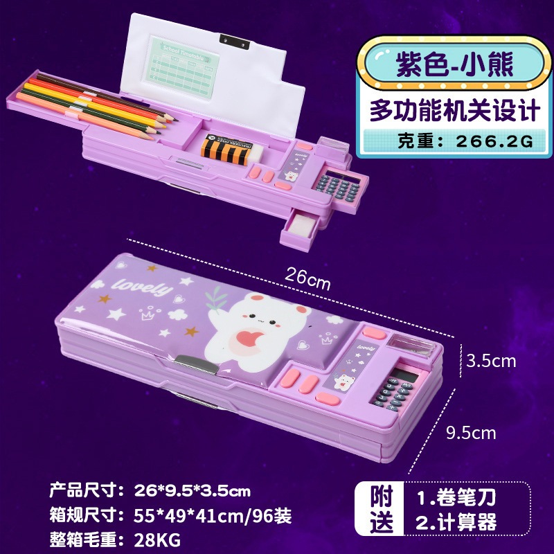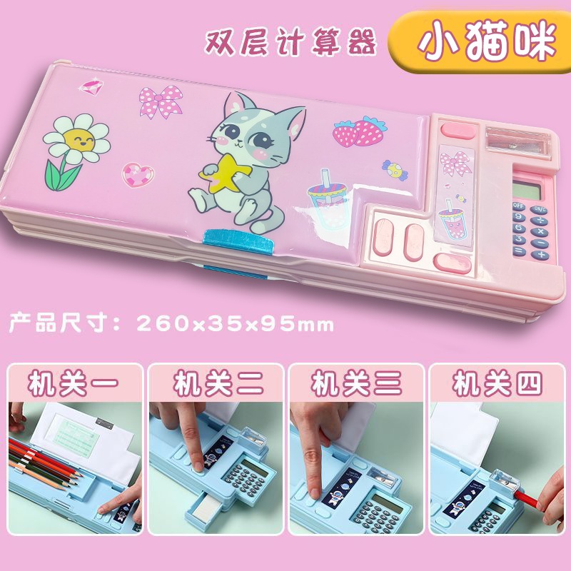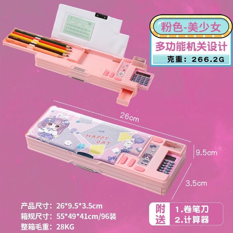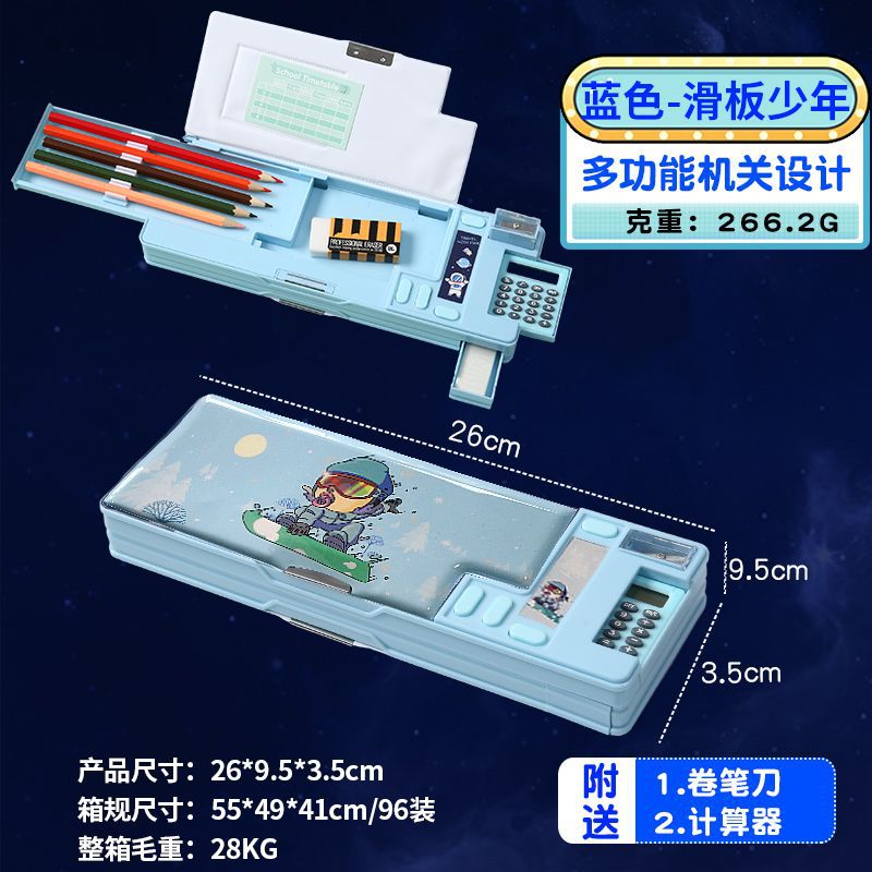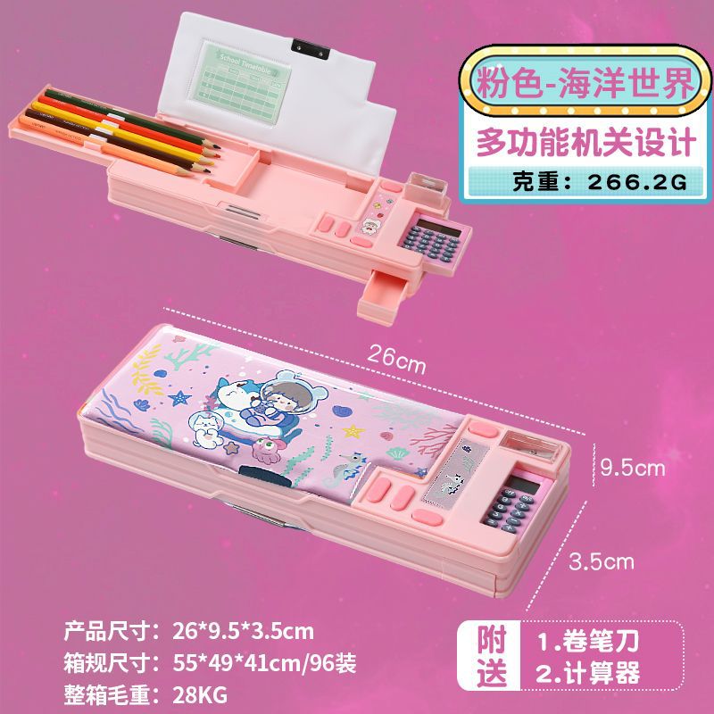 ペンケース 入学祝い 両面 ペンケース 鉛筆削り付き 2ドア 5本差し 鉛筆ボルダー 箱型 大容量 マグネット ふでばこ スパンコール流砂筆箱 文房具 筆入れ ペンポーチ 筆記用具 便利 かわいい 入