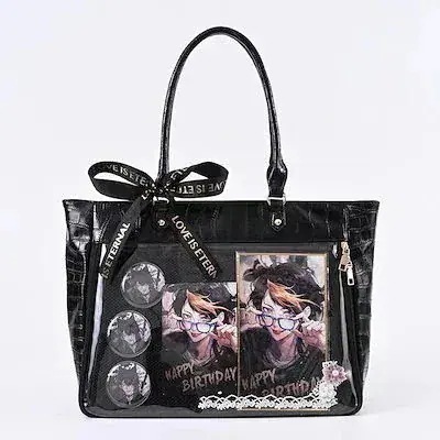 痛バッグ 痛バ 横型 地雷系ハンドバッグ 2タイプ 多推しカラー メッシュプレート付き 缶バッジ入れ ぬいぐるみ入れ 推し活 オタ活