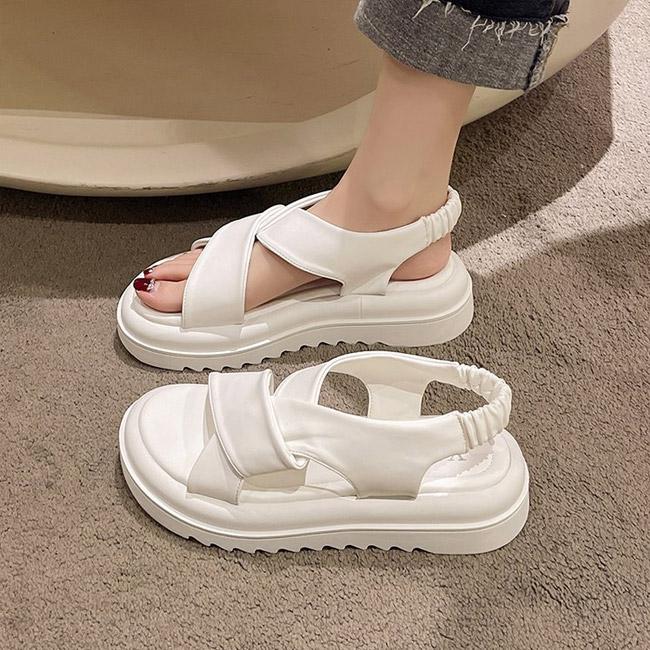 スポーツサンダルレディースフラットサンダル無地クロス前あき厚底かかとゴム滑り止め痛くない履きやすいシンプル脚