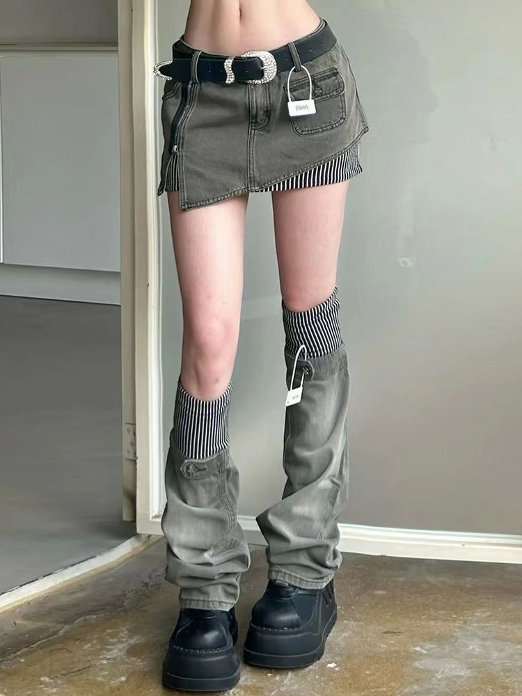 2025春夏 デニムスカート 2点セット ショート丈ボトムスハイウエストジーンズ K-POPストリート系韓国風ファッション練習ジーンズシルエット加工ゆったりレッグレディースカジュアルジーパン衣装