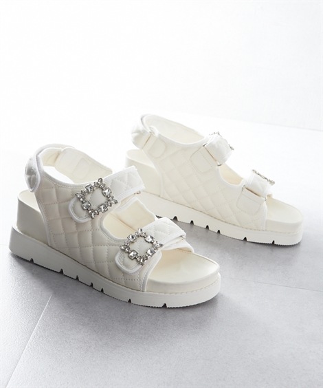 | 材料/素材 | 材質=合成皮革 底材=合成底 底の厚さ(前)=約3cm 底の厚さ(後ろ)=約6.5cm ワイズ=4E 重量=約350g(Lサイズ片足) ※生産時期や素材などによって多少個体差があります。 | ||