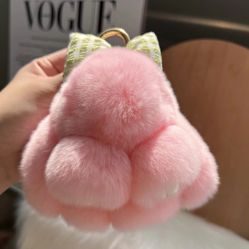 かわいい本当のカワウソのウサギの毛皮の弓バニー車の keychain の吊り下げ式の内部プラシ天の人形の本袋袋の魅力のキー ホルダー
