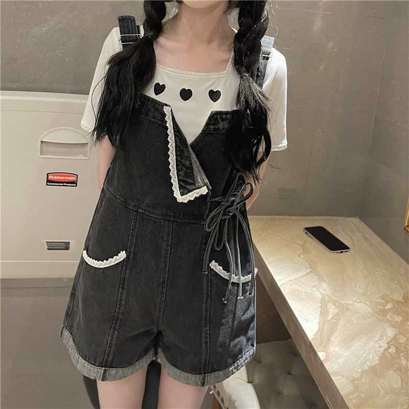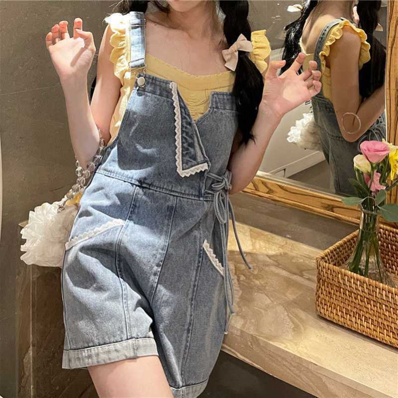 【急速発送】コーデ完成!サロペット レース学生 韓国ファッション 体型カバー ゆったり ストレートオールインワン サロペットパンツ ゆったり 無地 カジュアル ストレートワイドパンツ サロペット レデ