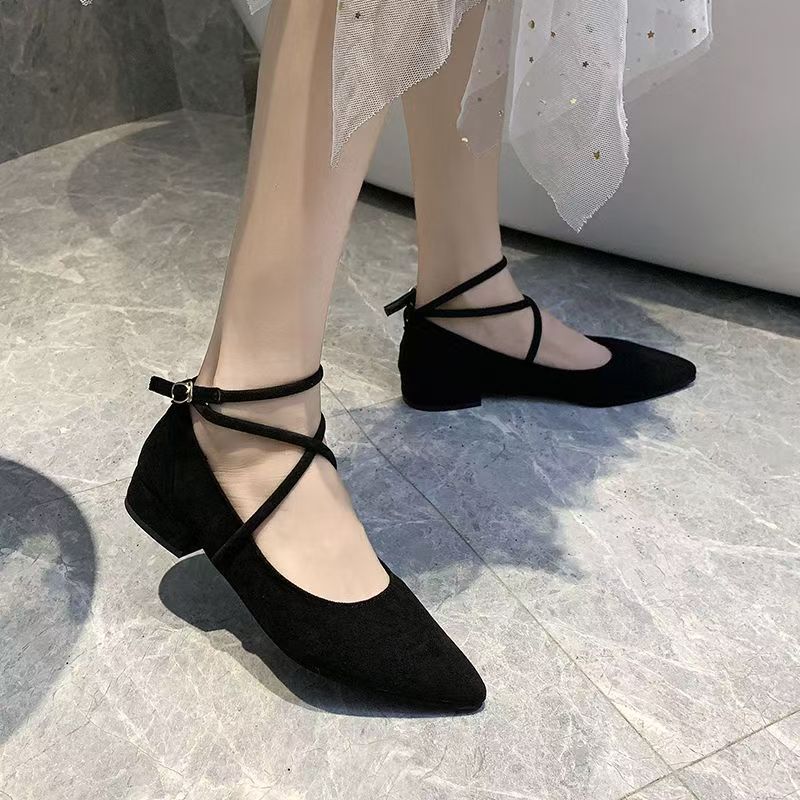 尖った太ヒールの靴女2025新型秋の仙女風クロスバンド百合低ヒール遅めのバッグサンダル