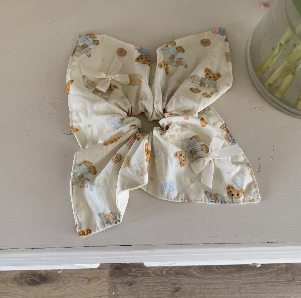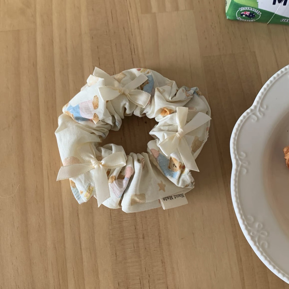 「2個」かわいいクッキー小熊(手作りアクセサリー)スクエアハンカチ大腸ヘアゴム韓国系少女用のリボンヘアゴムスクエアヘアアクセサリー