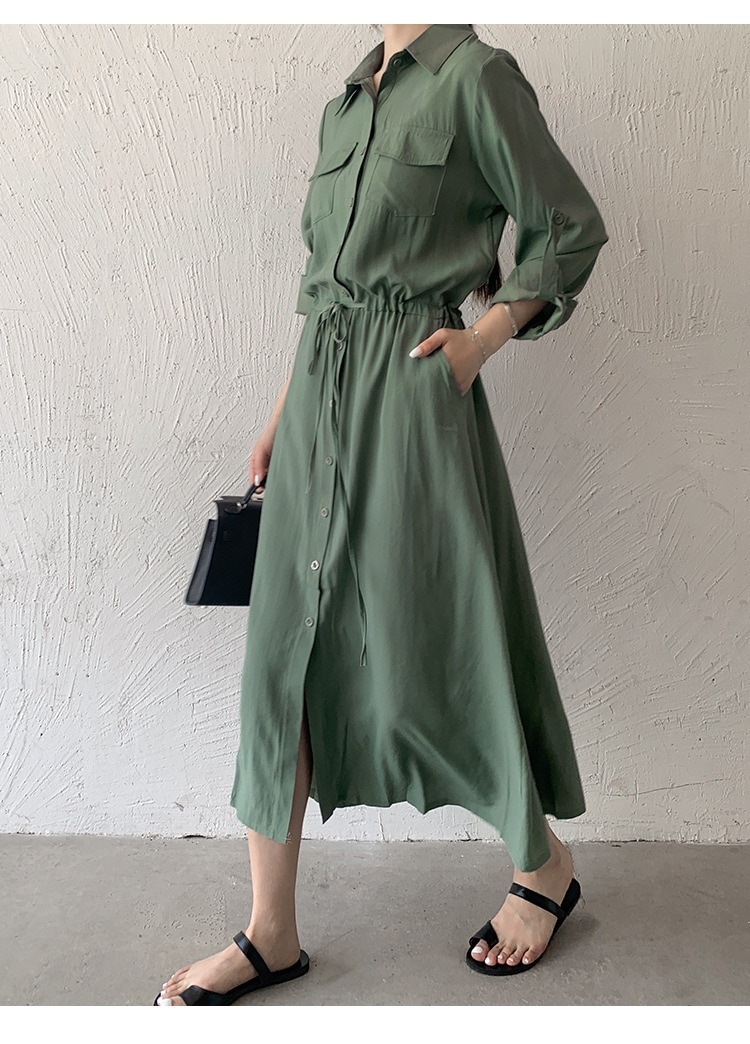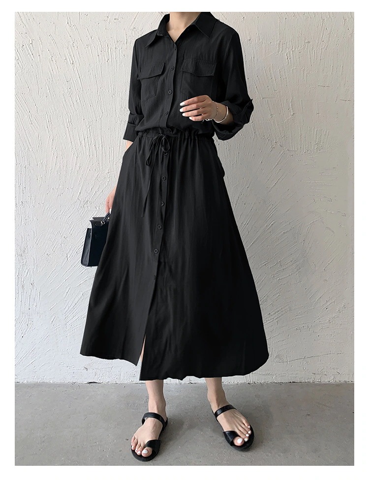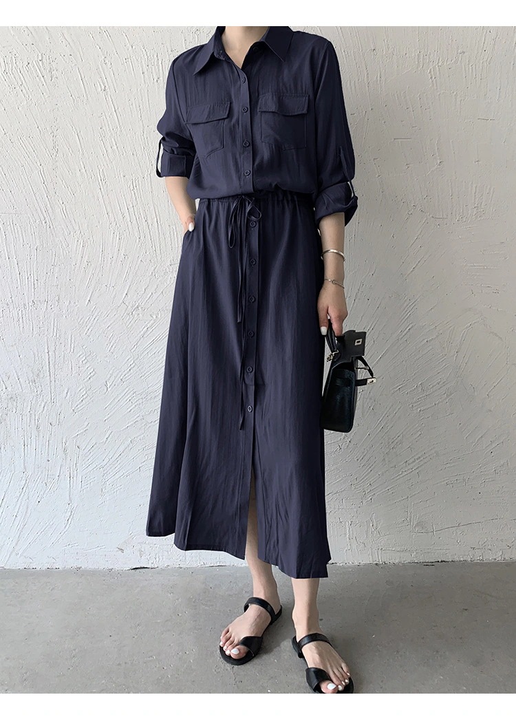 夏 人気 ロングワンピース シャツワンピース 襟付き 無地 カジュアル おしゃれ 通勤 OL 韓国ファッション レディース サマーワンピース