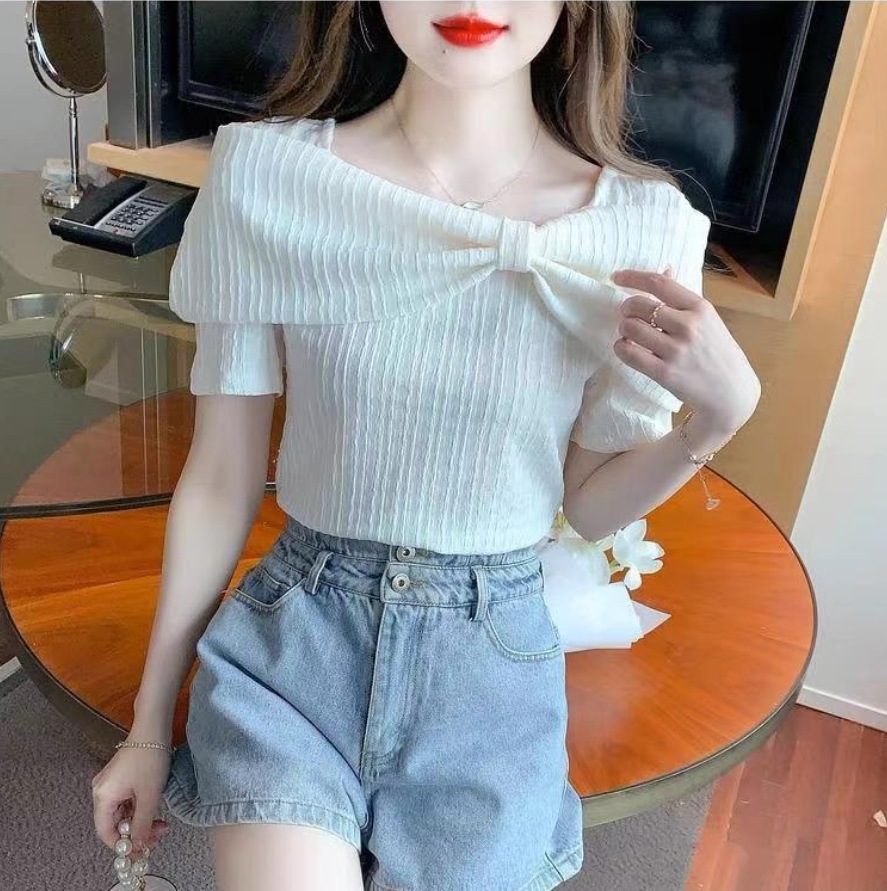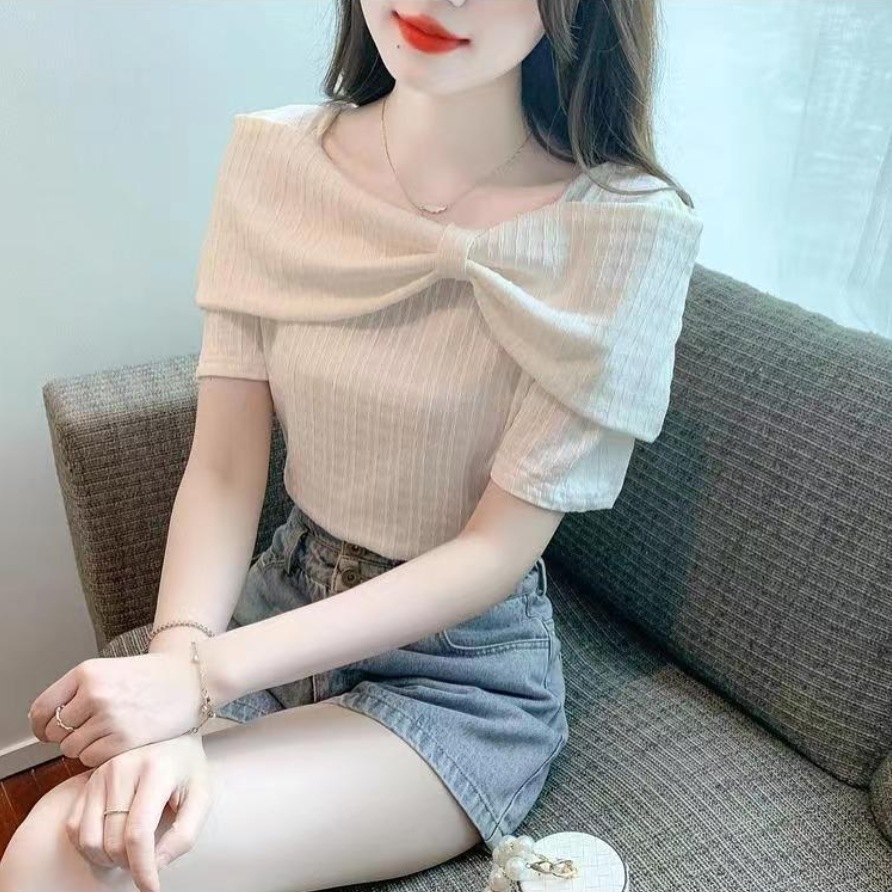 2025 年新作 夏用ファッションでオシャレデザイン性のあるマイナーで独特で美しいバタフライボウ付きトップス