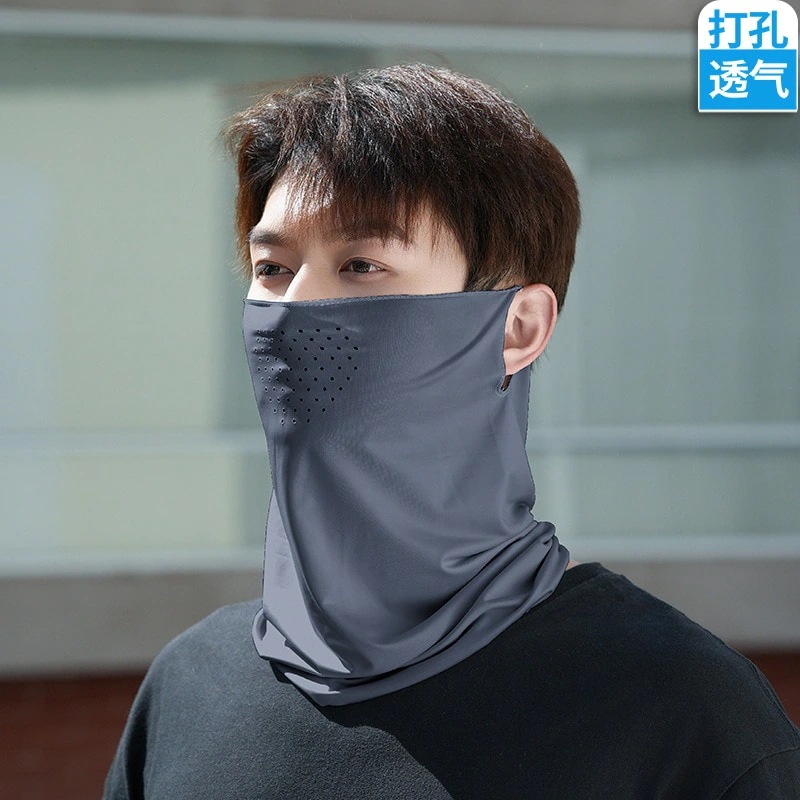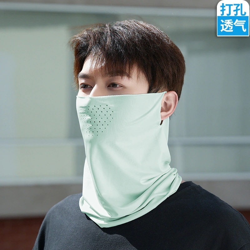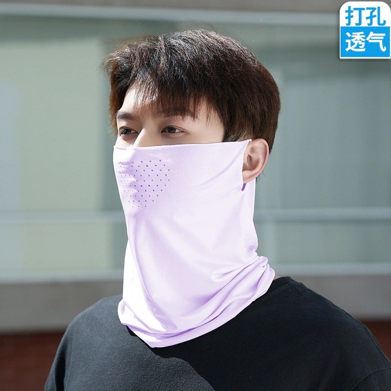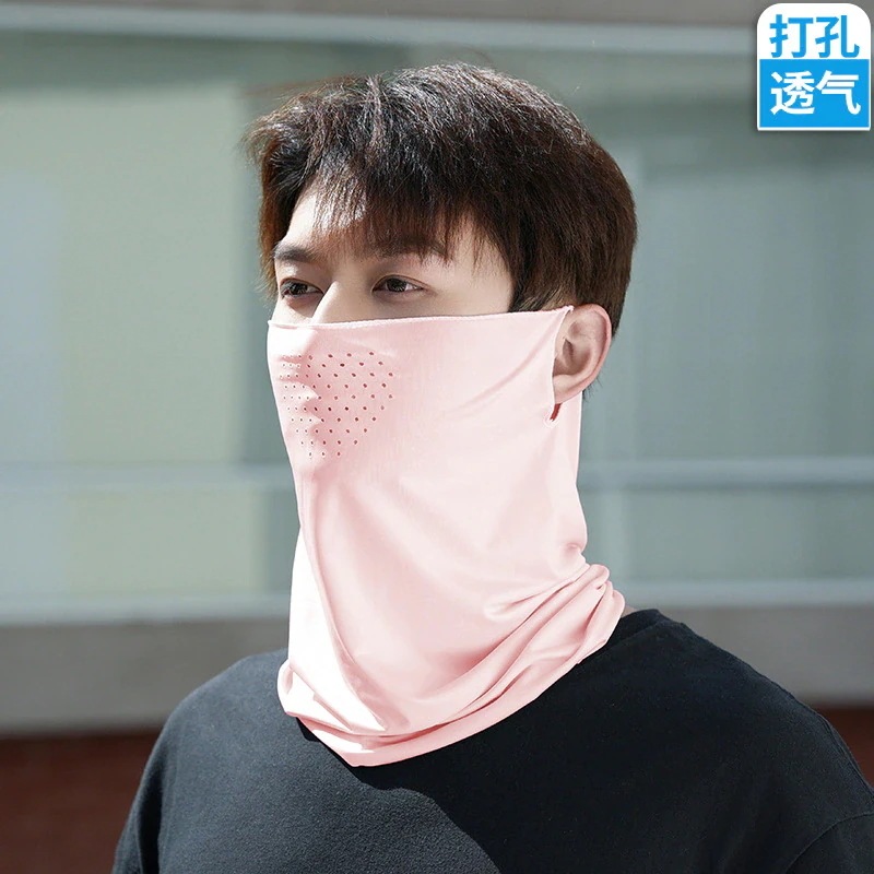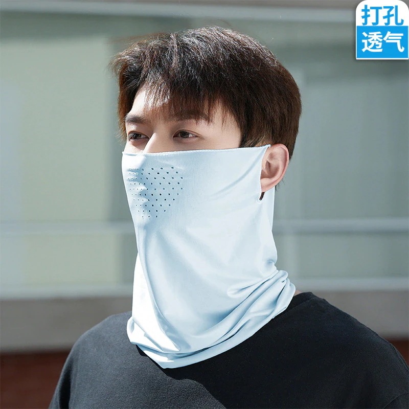 屋外穴あき氷シルク吊り耳サイクリングマスク春と夏の男性と女性サイクリングランニングスポーツ通気性日よけ呼吸穴フェイスタオル