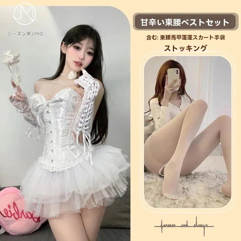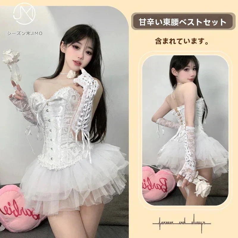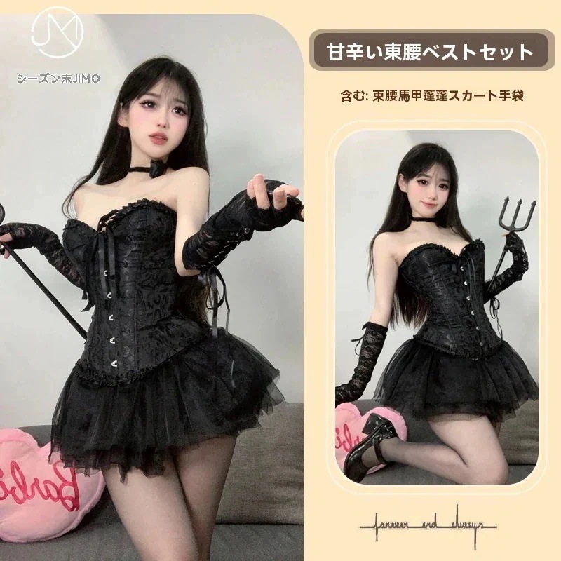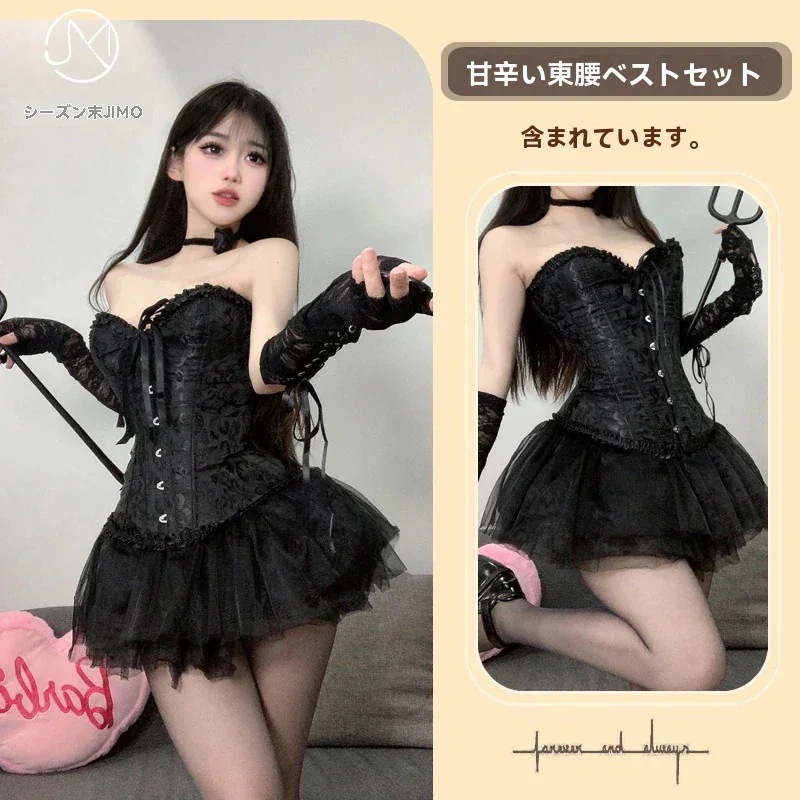 【 迅速な出荷 】ハロウィン コスプレ天使の超仙甘ギャルジャカードワンピースワンピースポンポンスカート2点/3点/4点/5点セット メイド服