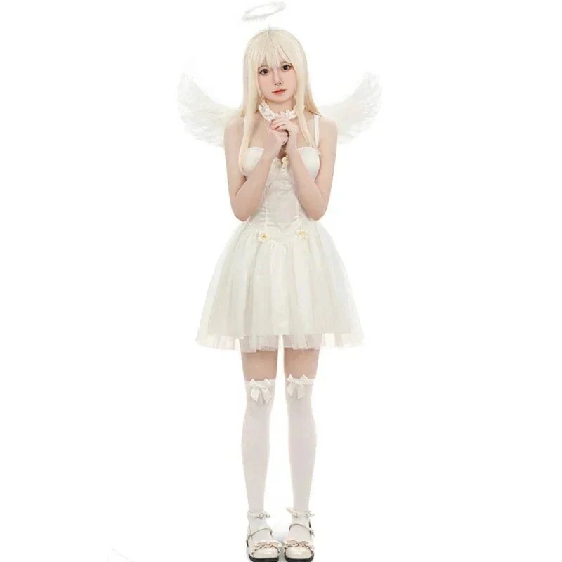 【 迅速な出荷 】ハロウィン コスプレ 大人気 セットアップ 翼のあるドロップシッピング白い天使のドレス黒天使プリンセスドレス魔法の