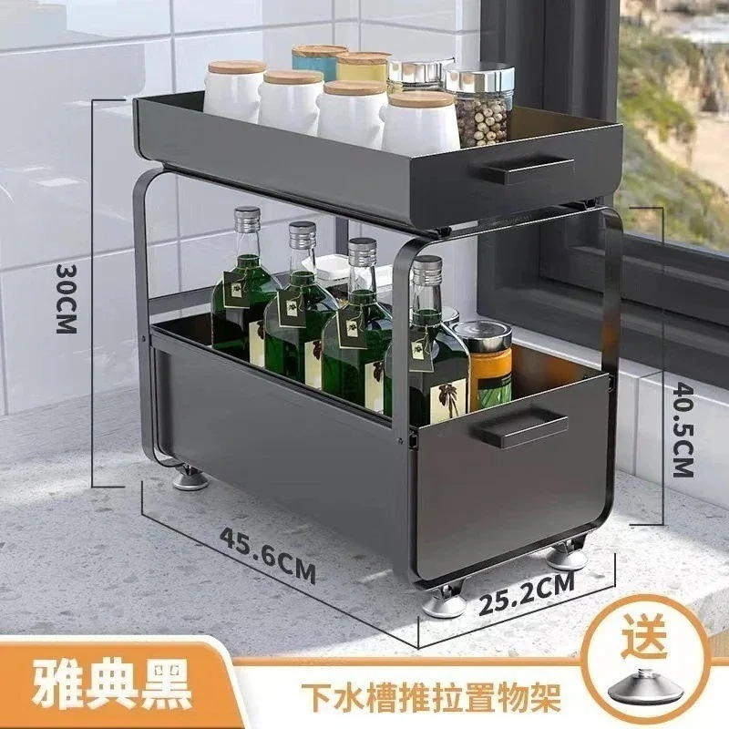 シンク下収納ラック キッチン収納棚 スライド式 引き出し 多機能 キッチン収納 洗面台下収納ラック 隙間収納 調味料 大容量 コンパクト 省スペース 新生活