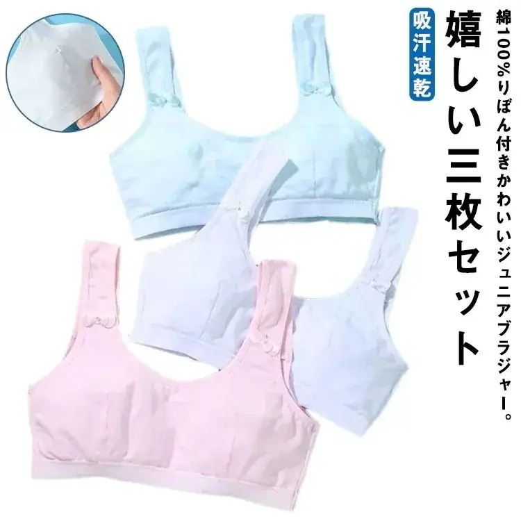 ジュニアブラ 肌着 中学生 小学生 ノンワイヤー 綿 インナー 女子 ファーストブラ 無地 子供 ガールズ ジュニアブラジャー 女の子 3枚セット 下着 吸汗速乾 ハーフトップ ナイ499