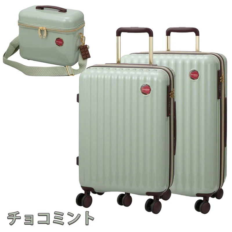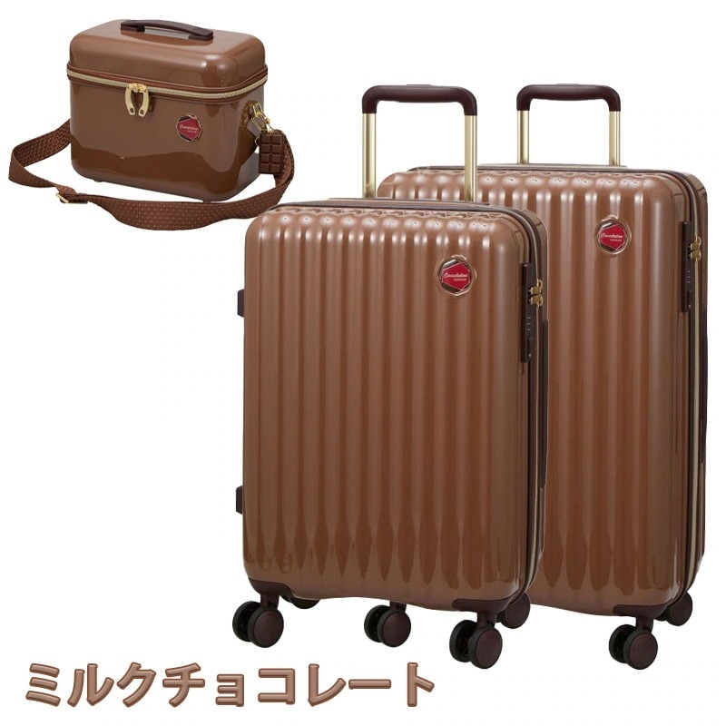シフレLUNALUX チョコレートデザイン スーツケース Mサイズ 62-72L バニティケース付き Cioccolatino LUN2319-57 キャリーケース 拡張機能 ドリンクホルダー付き