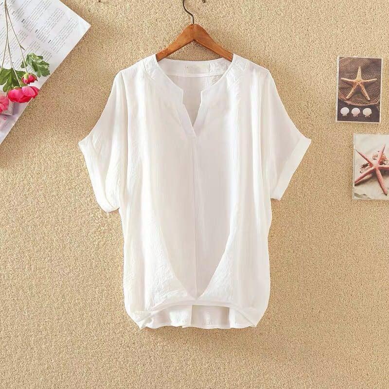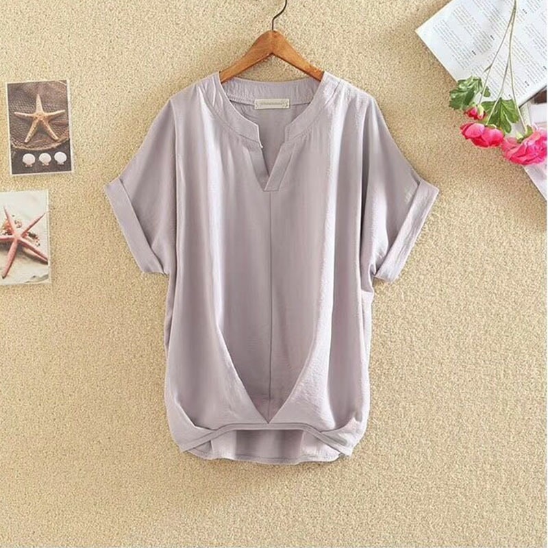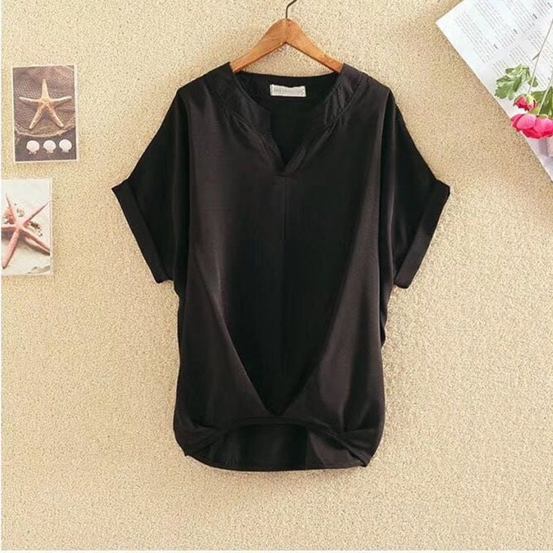 ブラウス 夏新作Vネック半袖シャツ緩いシフォンシャツ