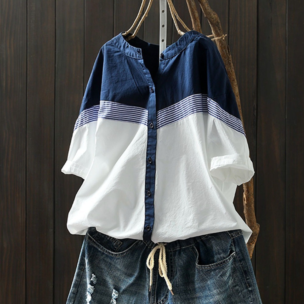 ストライプシャツ レディース 半袖 春夏 ゆったり カジュアル 半袖 トップス