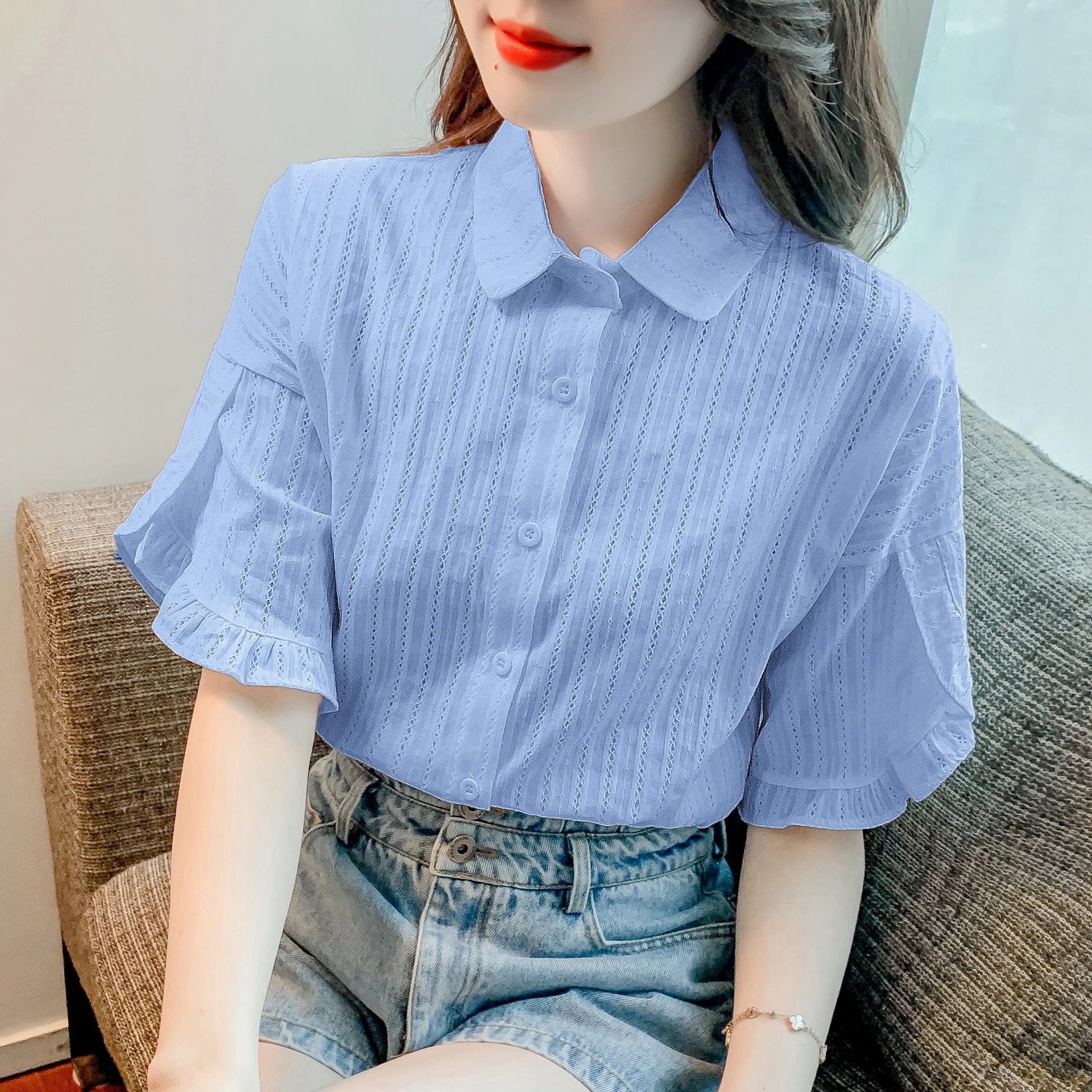 ブラウス女性フリルスリーブ夏の新しい緩いブラウス半袖 シャツ