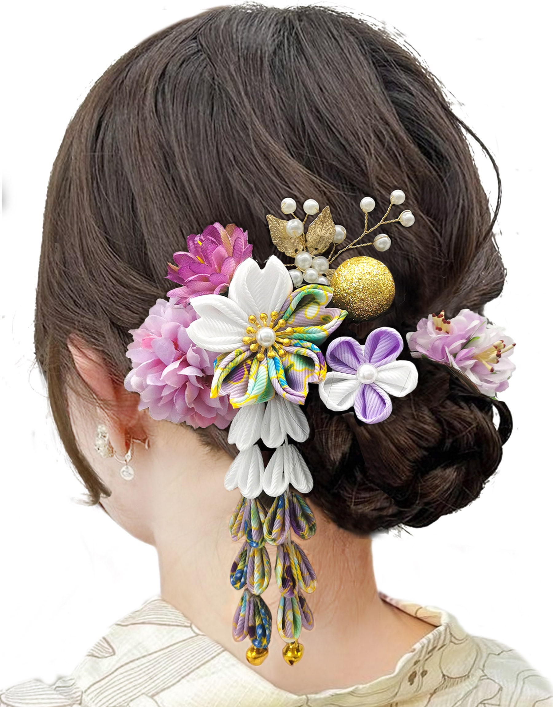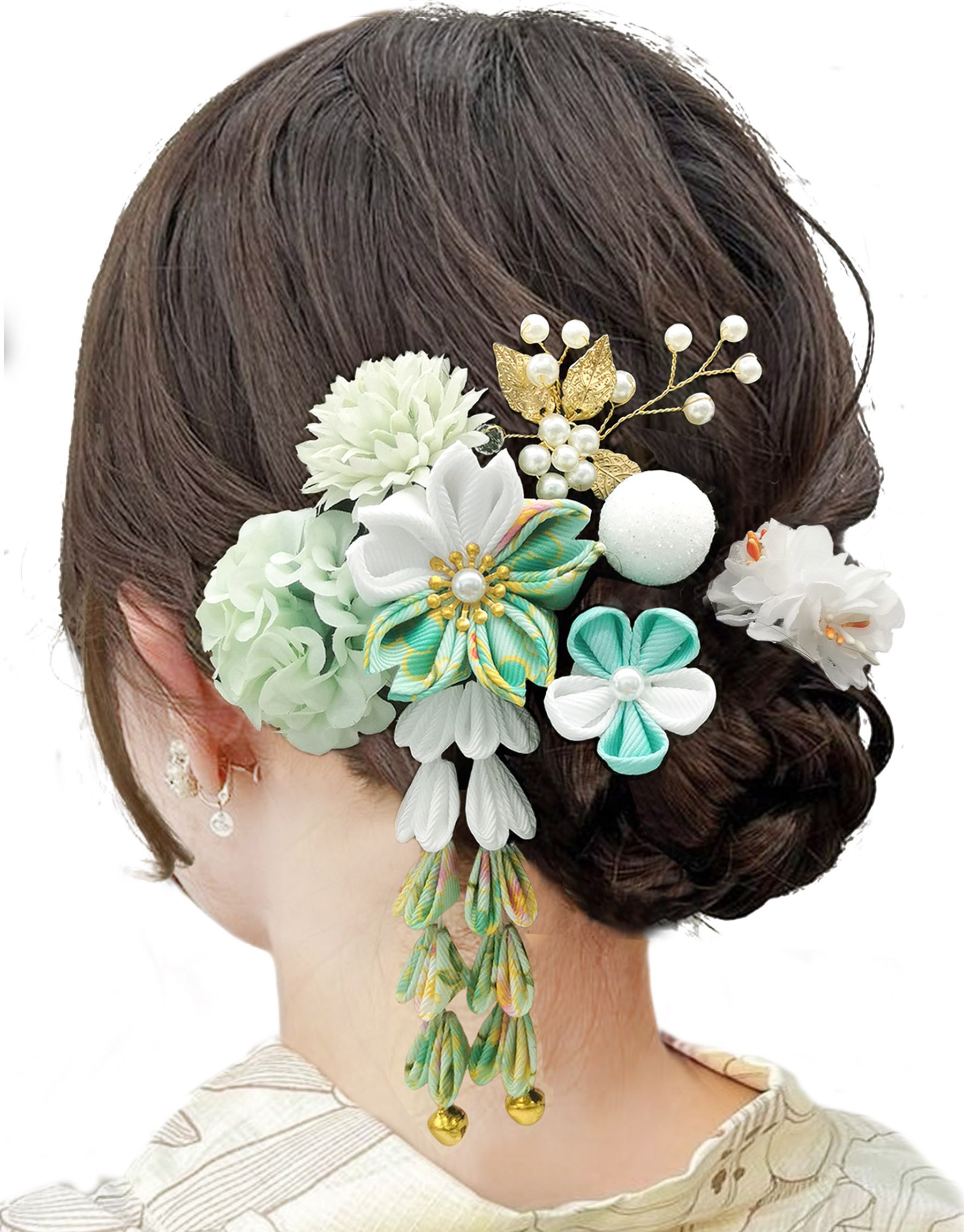 JZOON髪飾り つまみ細工 髪飾り 七五三 成人式 浴衣 袴 着物 振袖 和装 浴衣 人気 和服 卒業式 結婚式 鈴付き 手作り 金色の飾り玉 H6200