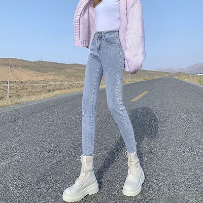 入荷 ハイウエストジーンズカーフパンツ4春秋スリムスキニータイトストレッチパンツ