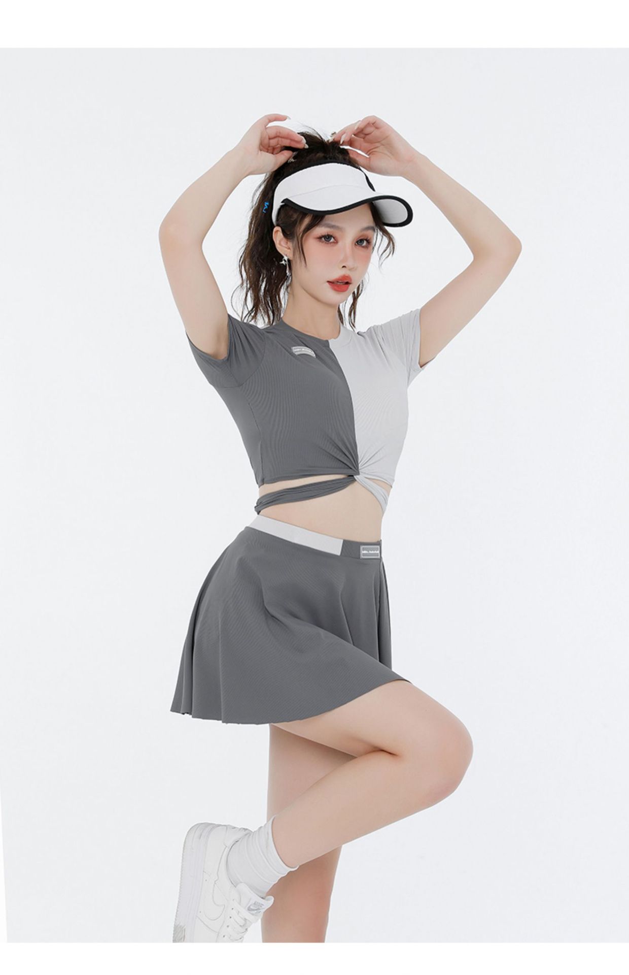 水着レディース2025新作温泉半袖スプリットスリーピーススーツ学生スポーツスタイルショートスカートスプライシングカラー