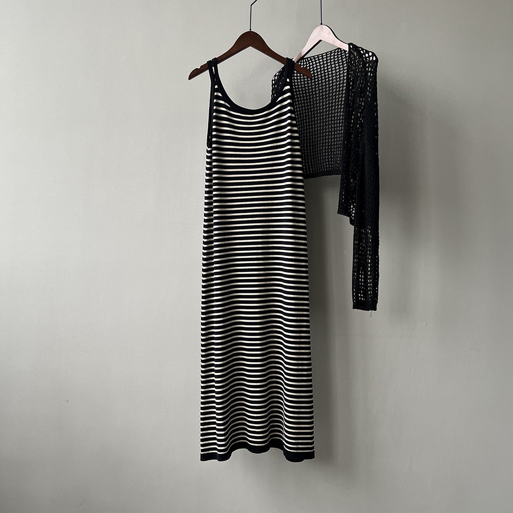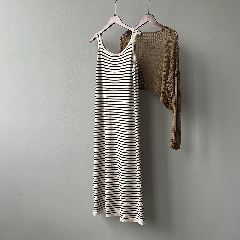ワンピース ドレス フレンチスリングバックドレス レディース 春夏新作 ボーダー 薄手 ニットドレス