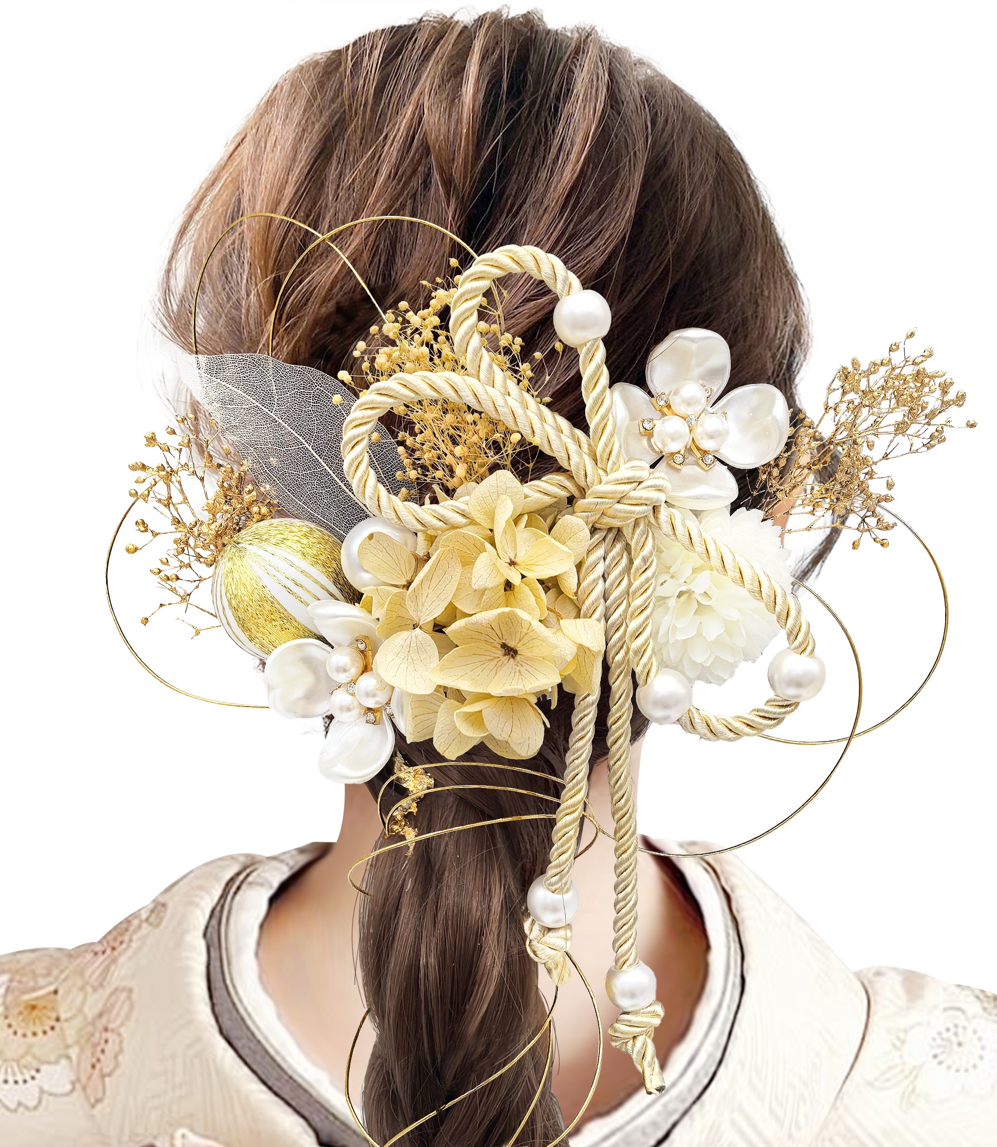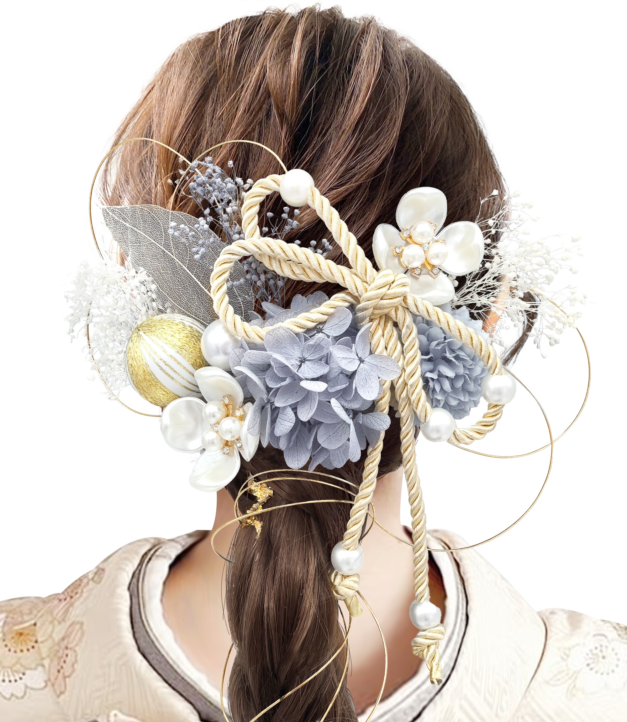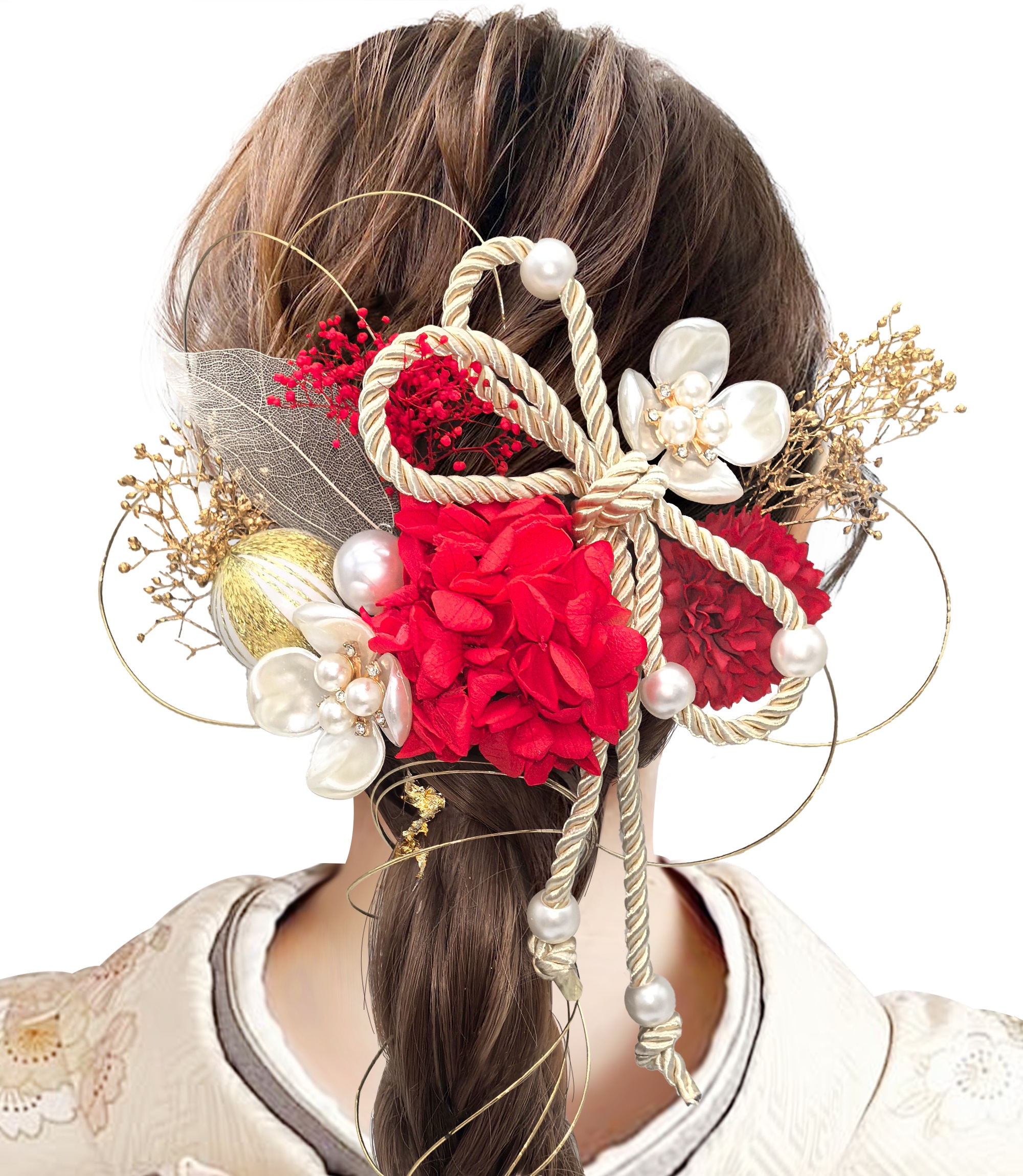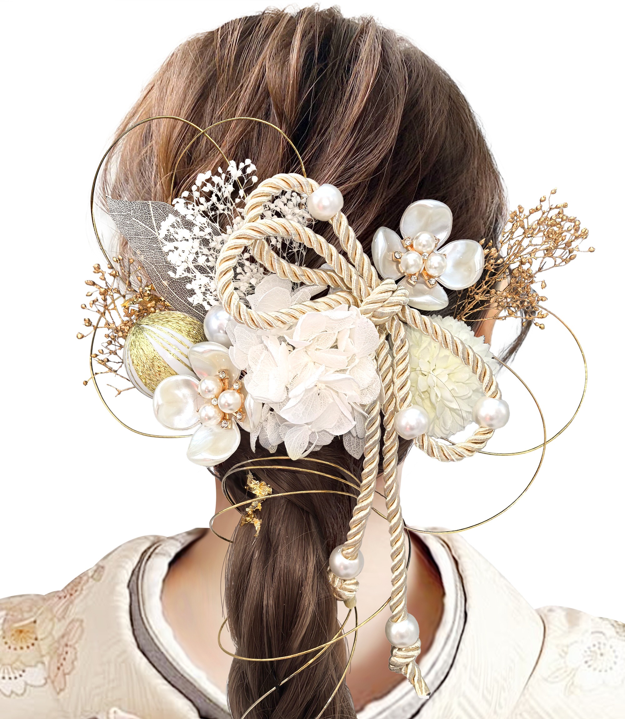 JZOON成人式 髪飾り【9色展開】 ドライフラワー かすみ草 振袖 着物 卒業式 七五三 浴衣 袴 結婚式用 造花飾り ヘアアクセサリー 和玉 水引 ヘッドパーツ 組紐 手作り 専用ケース付き A6000