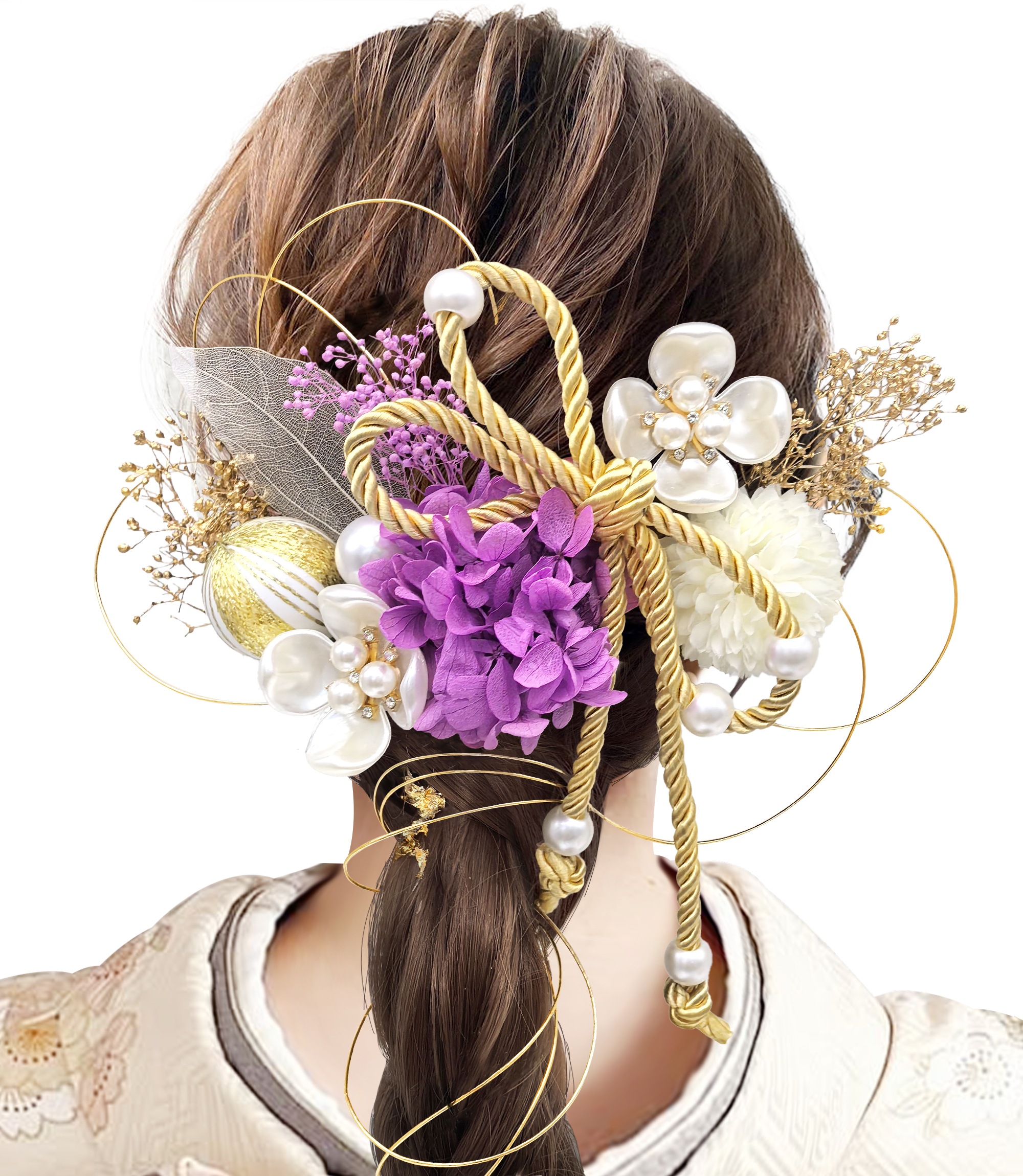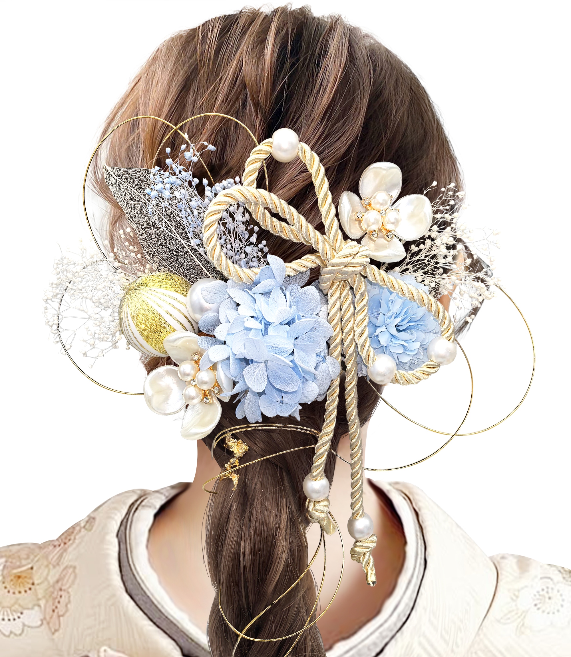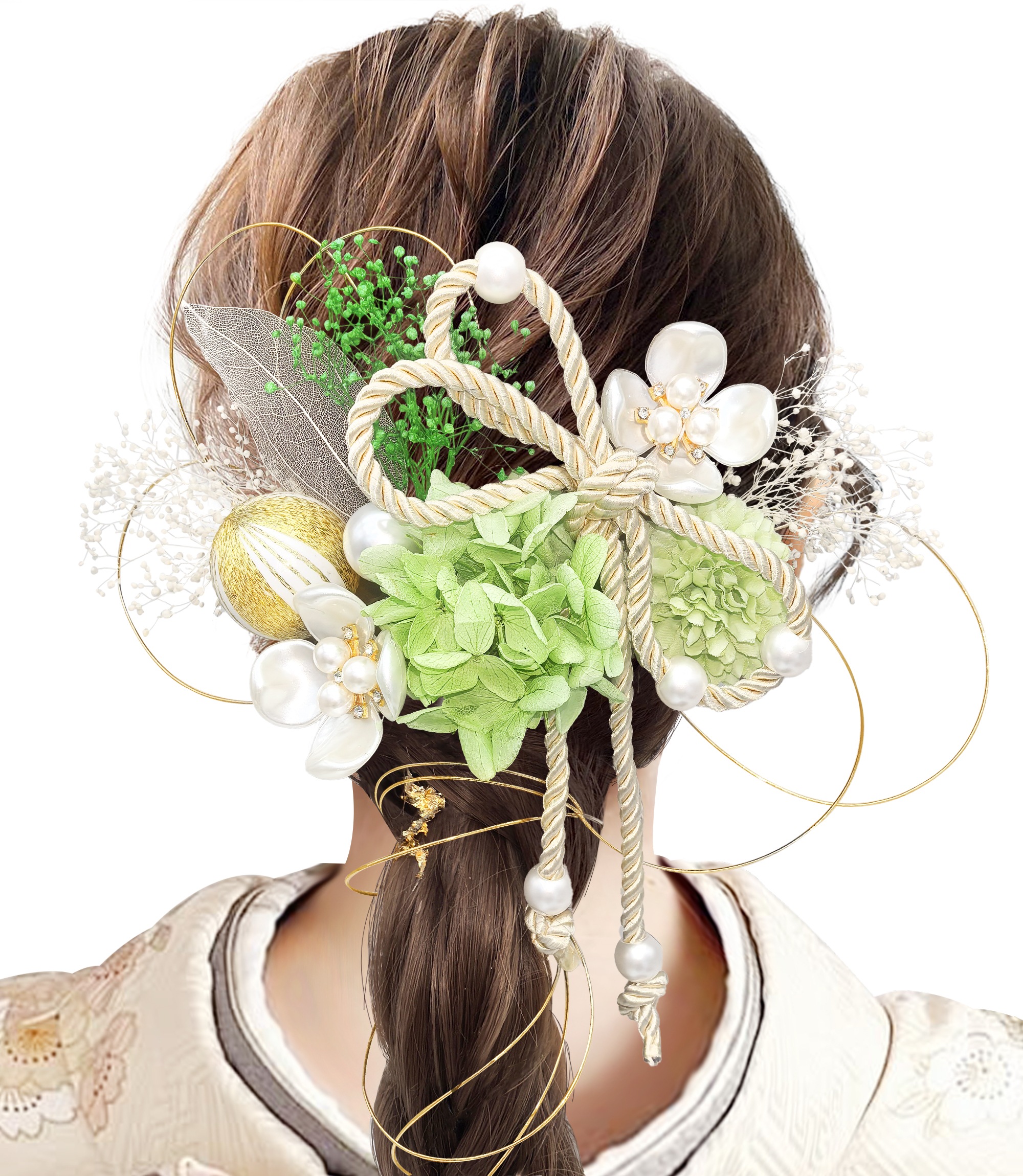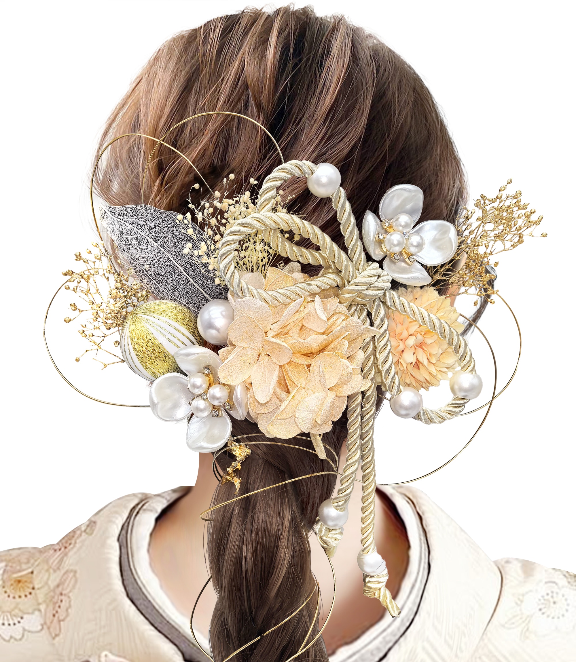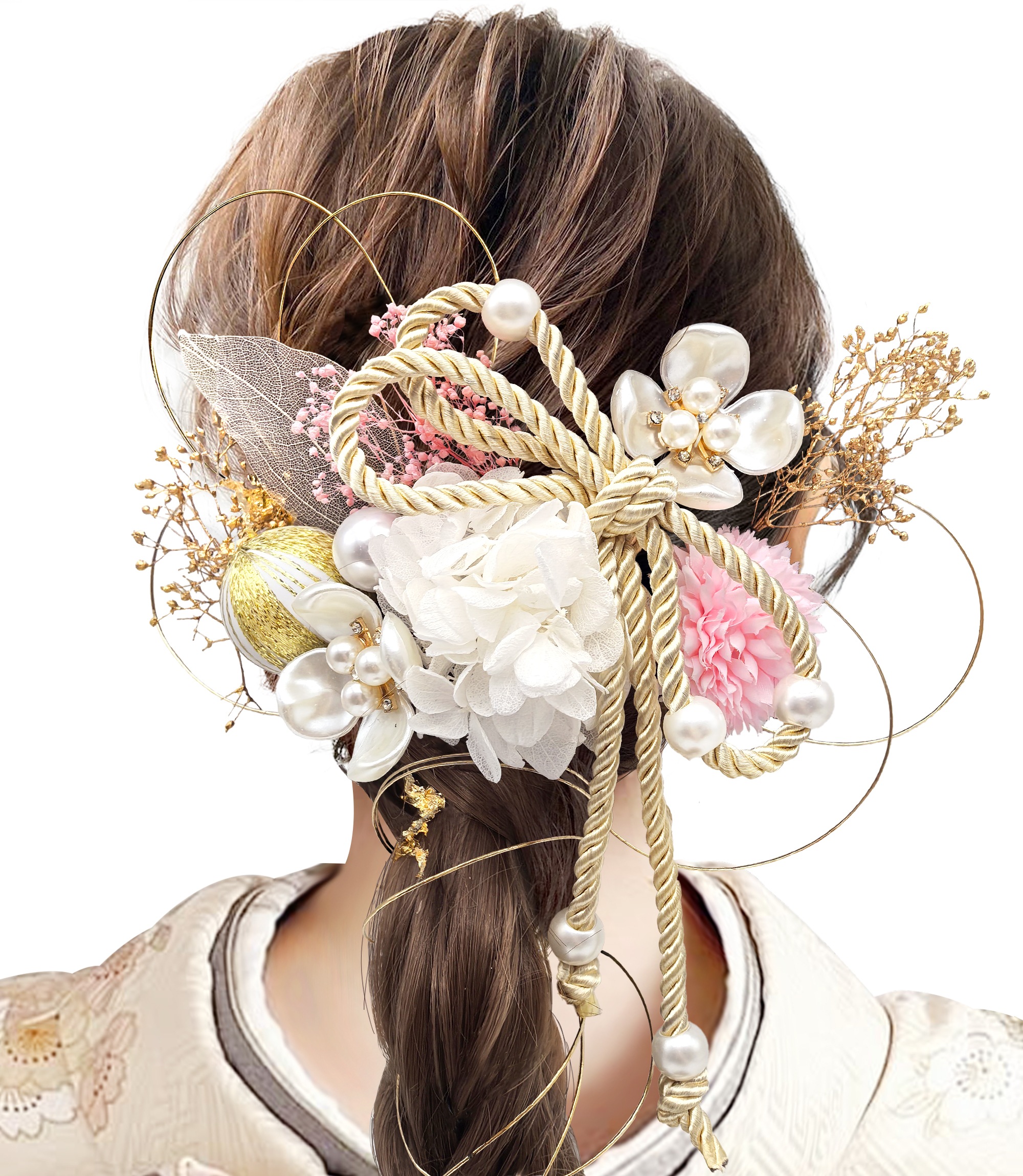 JZOON成人式 髪飾り【9色展開】 ドライフラワー かすみ草 振袖 着物 卒業式 七五三 浴衣 袴 結婚式用 造花飾り ヘアアクセサリー 和玉 水引 ヘッドパーツ 組紐 手作り 専用ケース付き A6000
