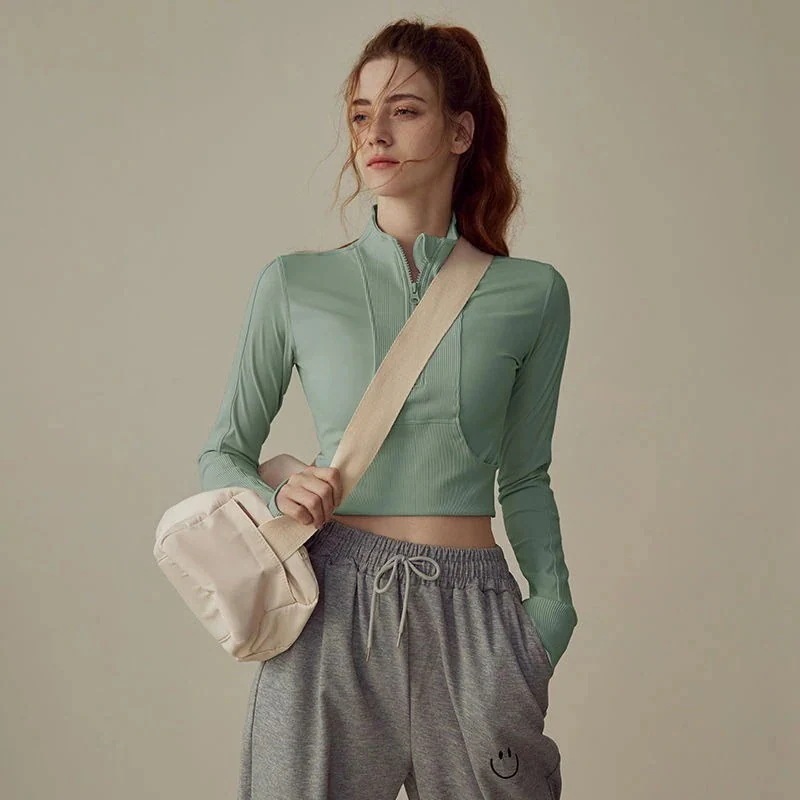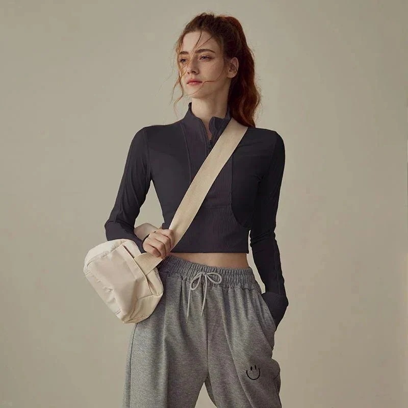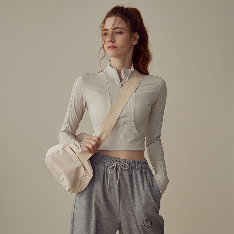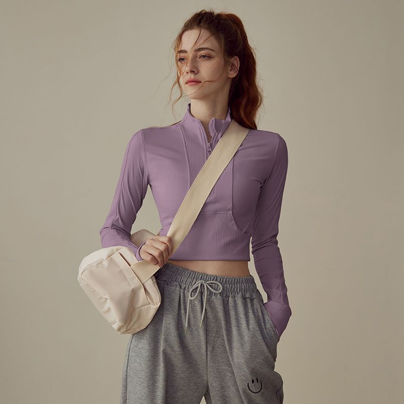 お家ヨガウェア おしゃれヨガウェア おしゃれヨガウェア春と秋のモデルハーフジップヨガウェア女性タイトな長袖ランニングフィットネスジャケットトレーニングスポーツトップス