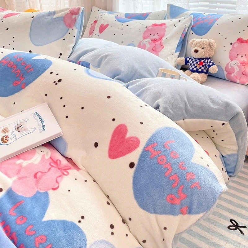 人気 新作急速出荷韓国ファッション 布団セット寝具 ベッドカバー布団カバーセットシングルふわふわ 厚手 裏起毛 布団カバー ベッドカバー 枕カバー 毛布 寝具 冬 可愛い 発熱メガ割