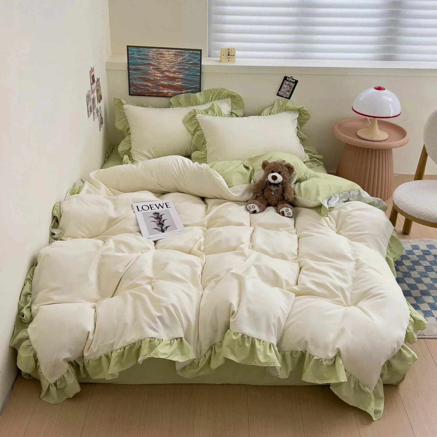 人気 新作布団カバー ins風水洗綿クリーム4点セットプリンセス風レース布団カバーシーツ寮3点セット1.2m 寝具4点セット 韓国