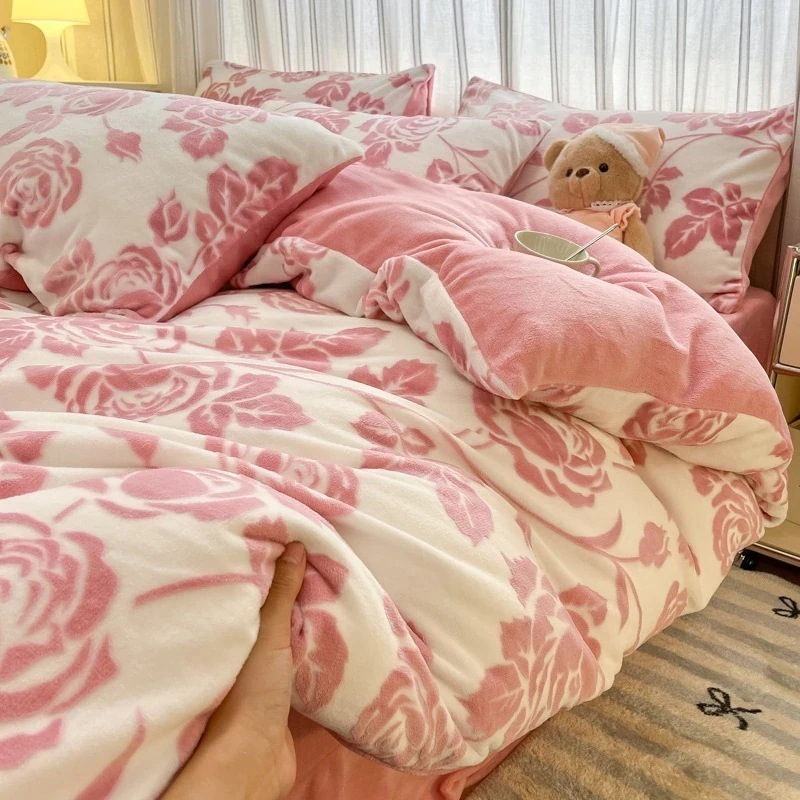 人気 新作急速出荷韓国ファッション 布団セット寝具 ベッドカバー布団カバーセットシングルふわふわ 厚手 裏起毛 布団カバー ベッドカバー 枕カバー 保温 毛布 寝具 冬 可愛い 発熱メガ割