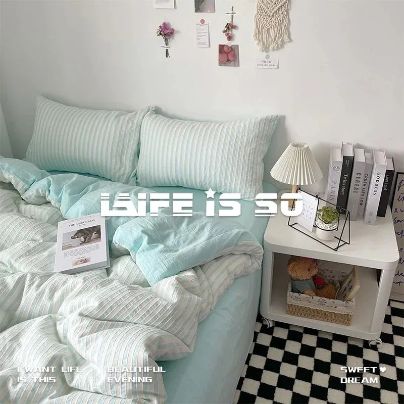人気 新作人气 新作布団セット シンプルなストライプ布団カバーシーツ3点セット/4点セット ベッドカバー