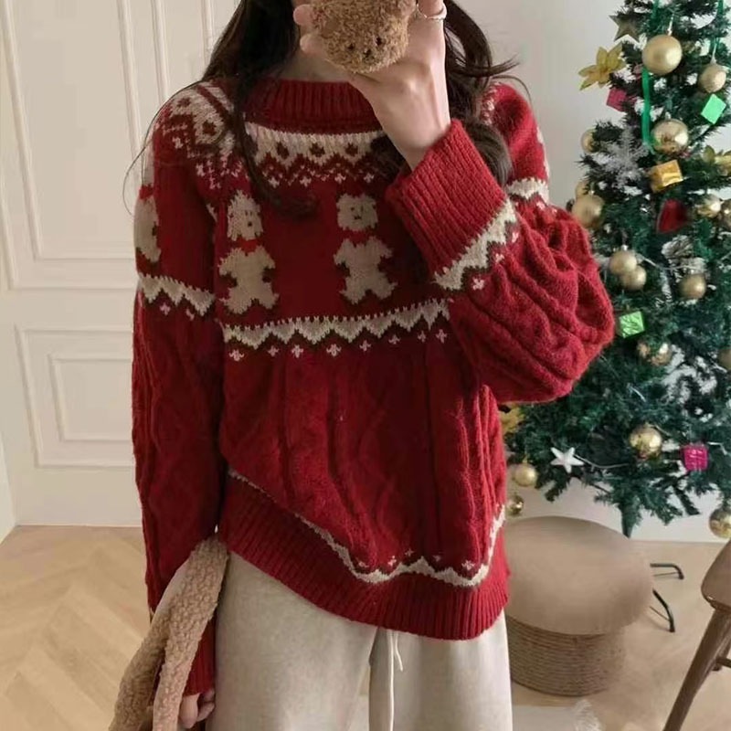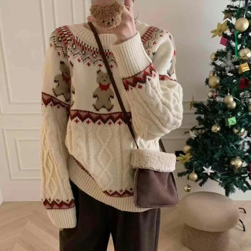 2025 新しい秋と冬の韓国スタイルのレトロなクマ怠惰な雰囲気多用途年齢を減らすセーターセーター女性のトップ