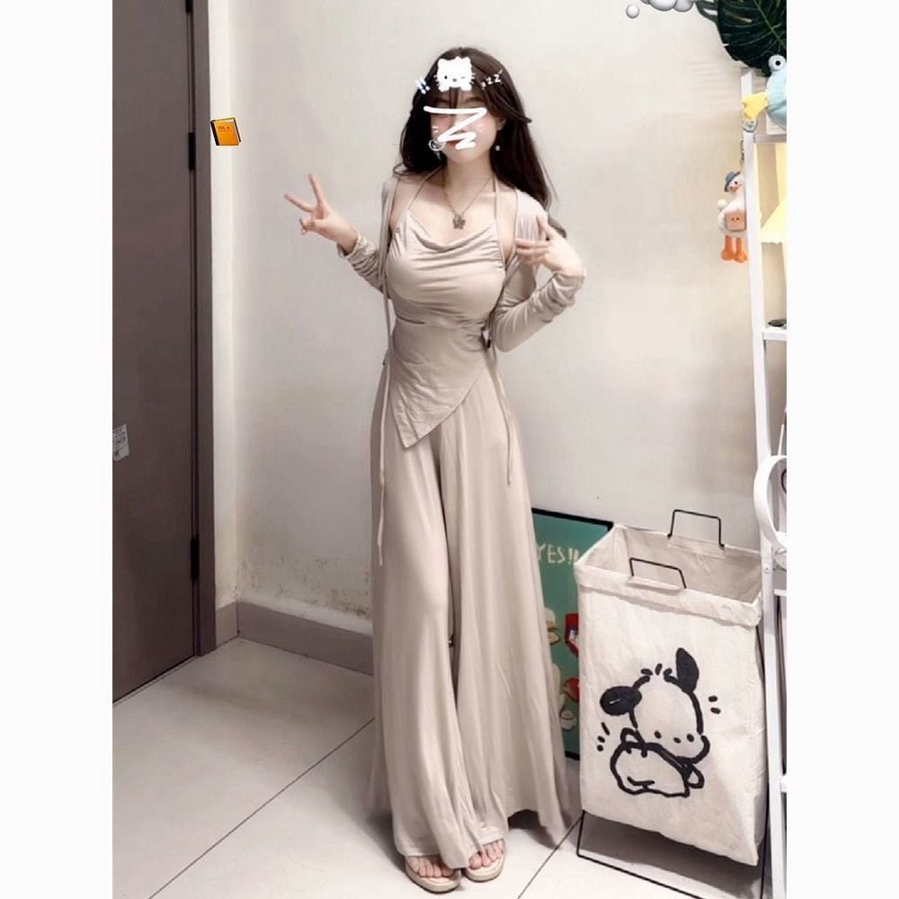フレンチルーズリラックスソフト通勤用スリム効果付きスーツ 2025 新作 カミソール + カーディガン + パンツの小眾的な 3 点セット 女性用