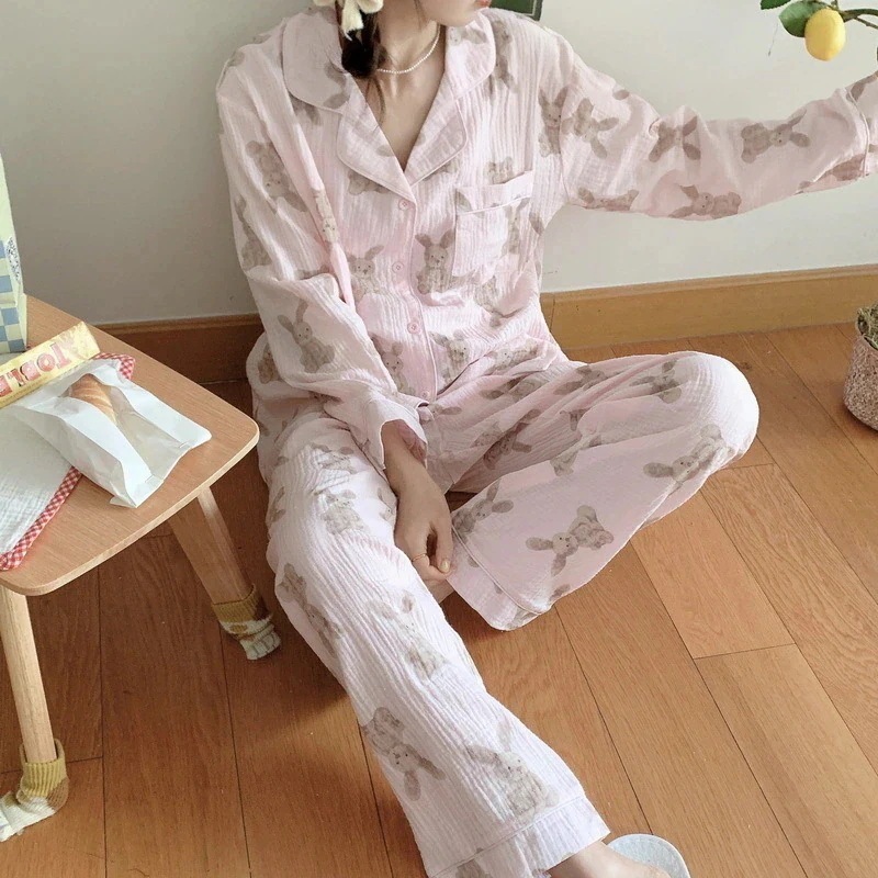 【 迅速な出荷 】パジャマ レディース セットアップ 韓国 部屋着 ピンクウサギキャラクター綿 入りゆったり 長袖 パジャマセット 可愛い 寝巻き 2点 セット