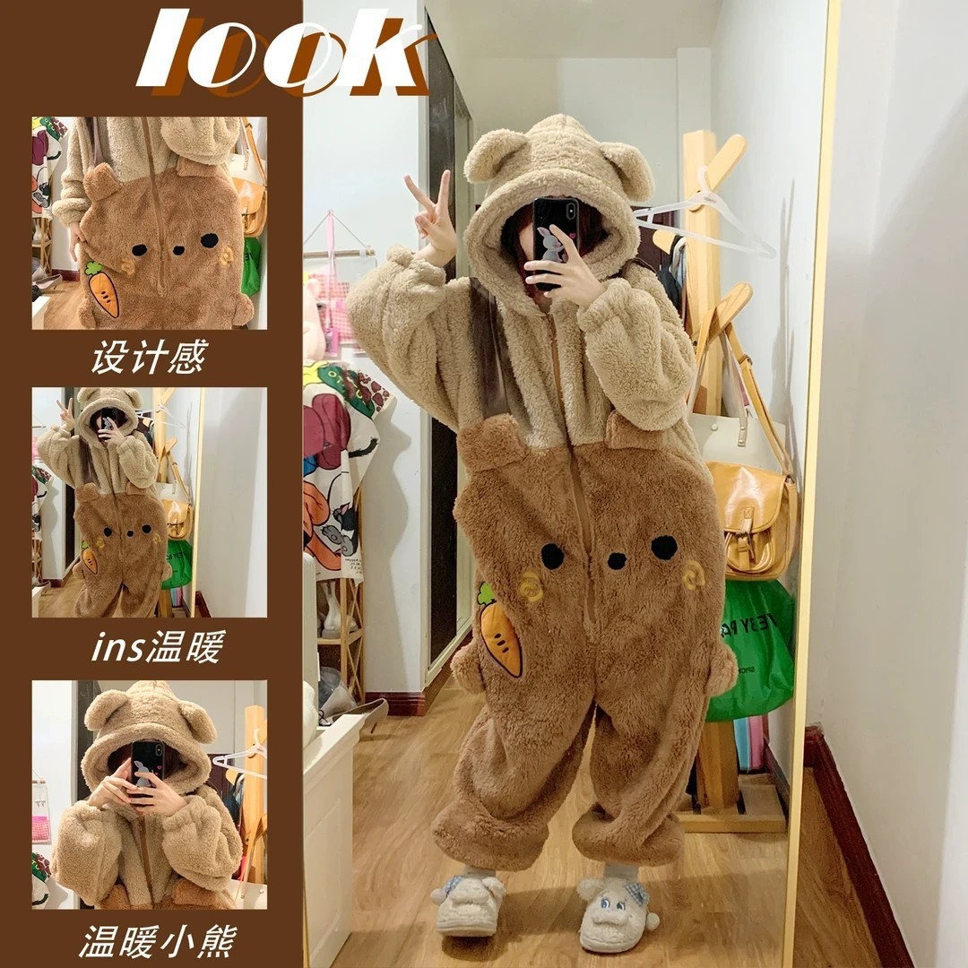 【 迅速な出荷 】【人気商品】 着ぐるみパジャマ 可愛いウサギコーラルフリース裏起毛オールインワンフランネルモコモコパジャマ 長袖 上下セットファスナー付きルームウェアセットアップ レディース