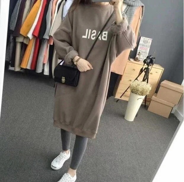 トレーナー 裏起毛フードつきのスウェットプルオーバーロングワンピー 春秋物 レディース 長袖 3色