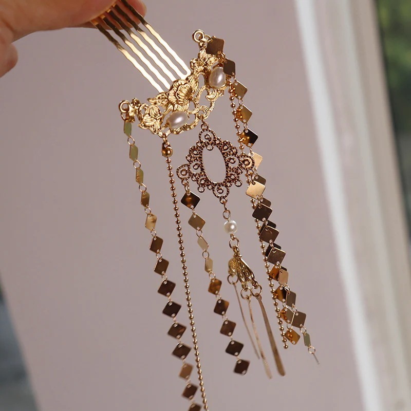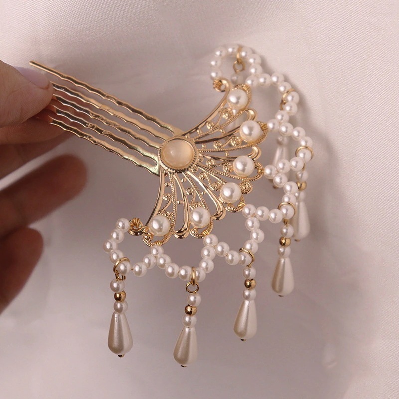 古風明制唐の復古髪飾り漢服チャイナドレス髪櫛 百合の宮廷は真珠を模して時代劇の髪飾りをつけかんざしをしている