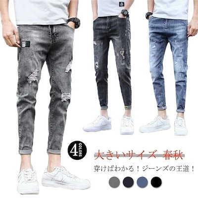 デニム ジーンズ メンズ ボトムス クラッシュ ダメージ ストレート 大きいサイズ デニムパンツ ストレッチ HA アンクル丈 スキニーパンツ 穿けばわかるヴィンテージクラッシュデニム 服