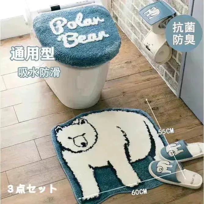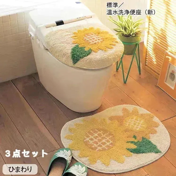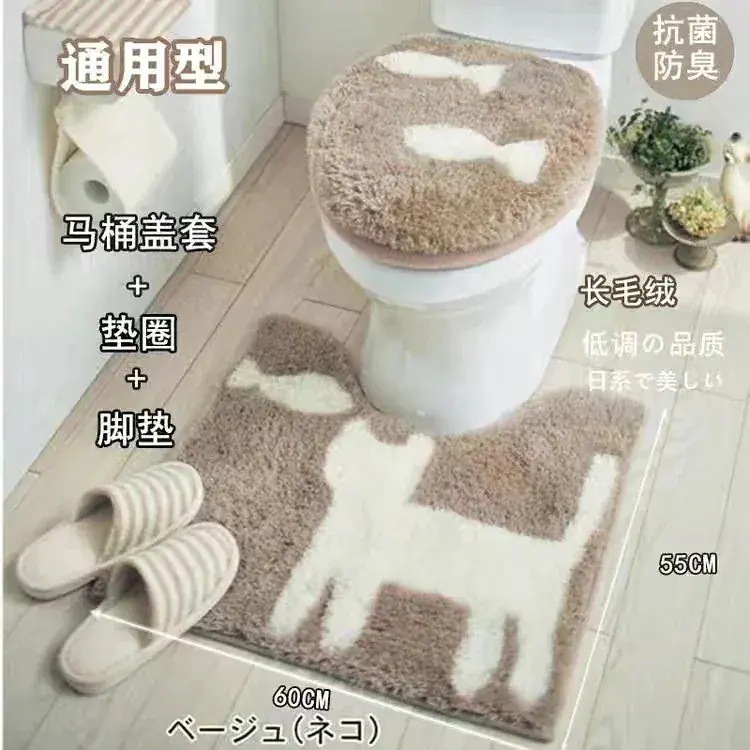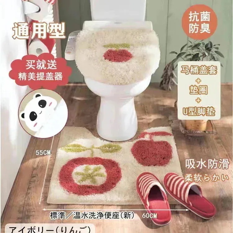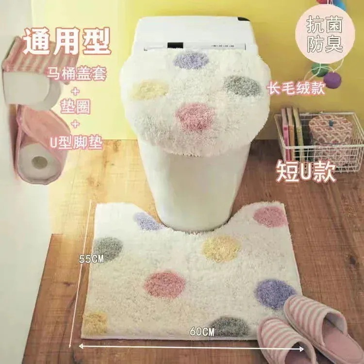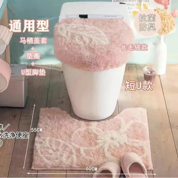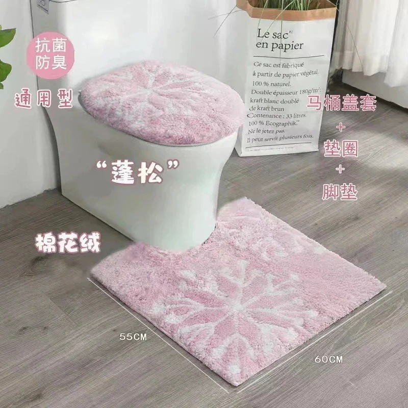 23トイレカバー23点セット便座カバーフットパッドバスマット滑り止めトイレ用品 便器輪クッション厚くてかわいい便器蓋カバー輪カシミヤの足マットを模した