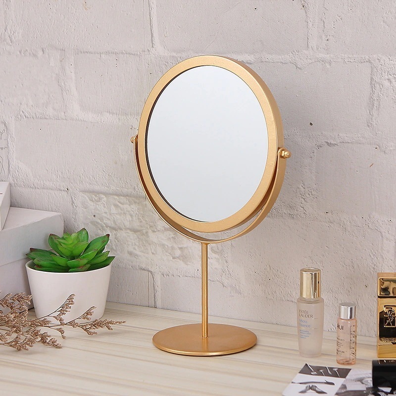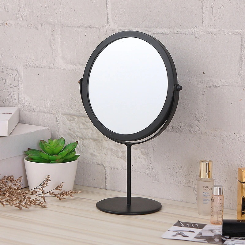 卓上錬鉄金属化粧鏡ブラケット背の高い丸い小さな鏡は机の化粧鏡を立てることができます