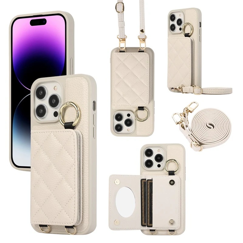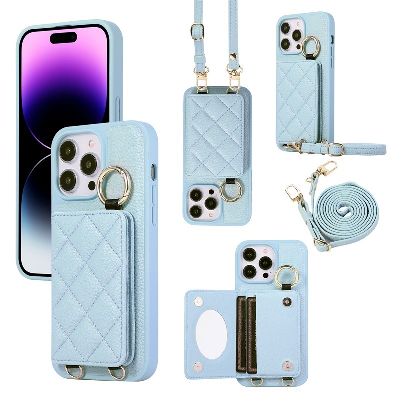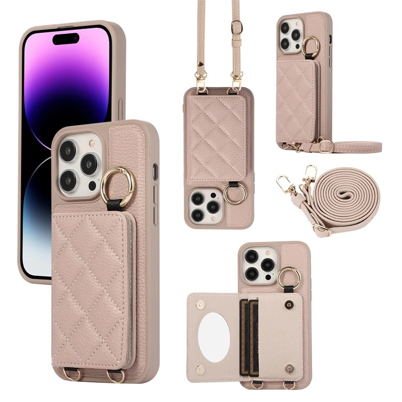 iphone 15 Pro Max ケース ショルダータイプ 肩掛け 斜め掛け 背面カード収納 リング付き 鏡 ミラー付き カードケース 耐衝撃 落下防止 iphone 14 13 12 11ケース