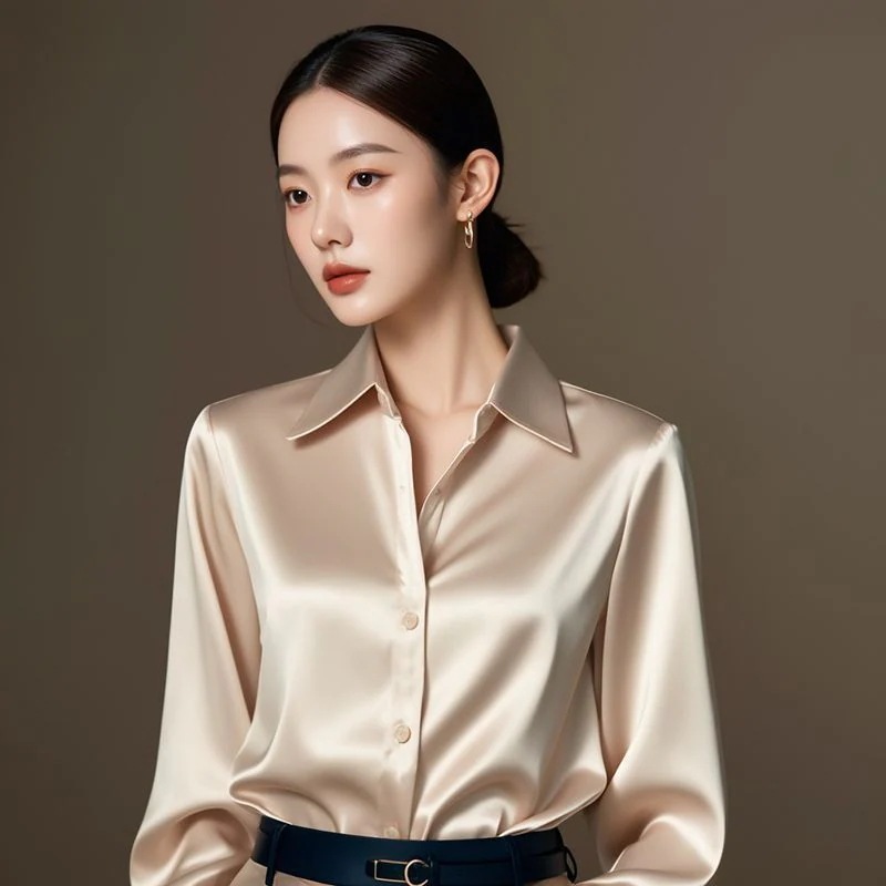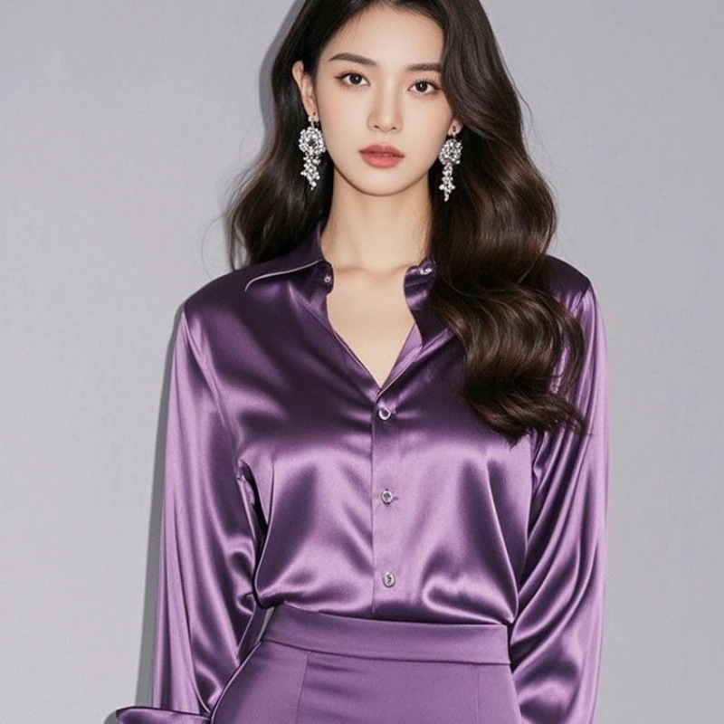 ブラウス 夏 新作 接触冷感 グレー サテンブラウス 無地 長袖 フレンチ トップスレディース デザインブラウス