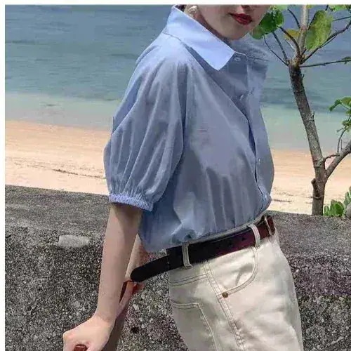 ブラウス 夏 新作 気質 半袖シャツ レトロ 無地 通勤 オフィス トップスレディース デザインブラウス 襟付き