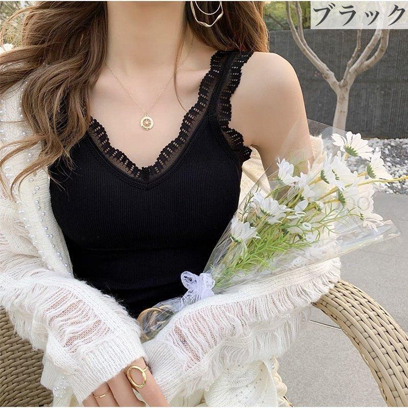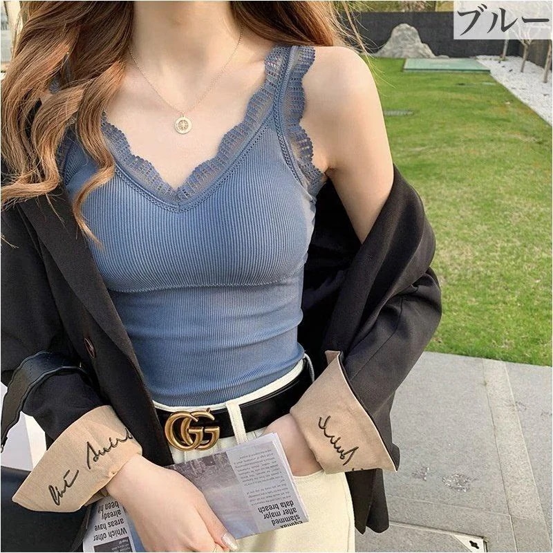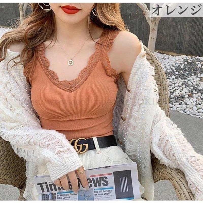リブで伸縮性があり身体にフィット。レースのデザインが可愛く、カップつきで心配いらず。