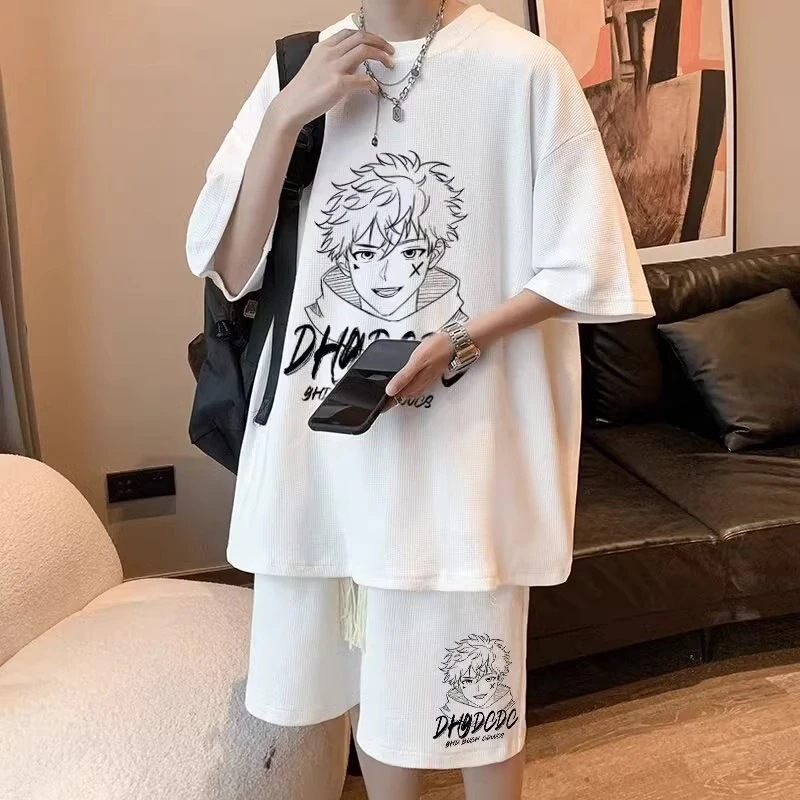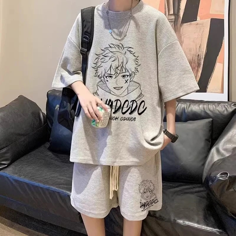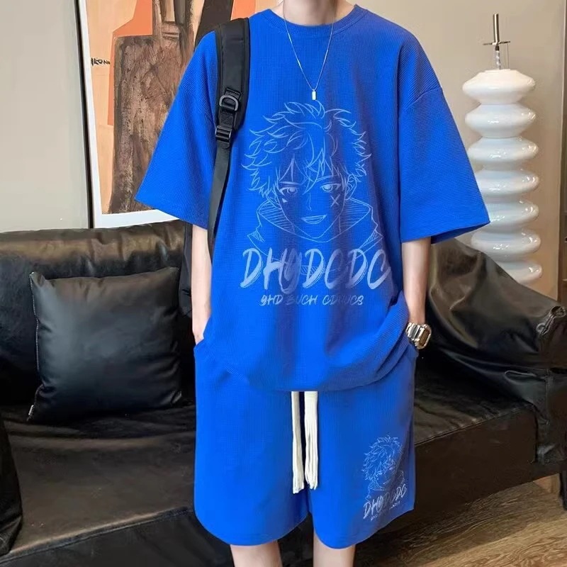半袖スーツメンズサマーユースカジュアルスポーツウェアショートパンツ+半袖ツーピーススーツ