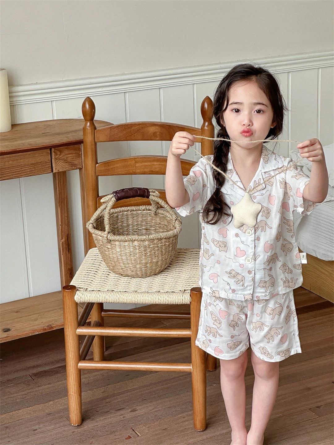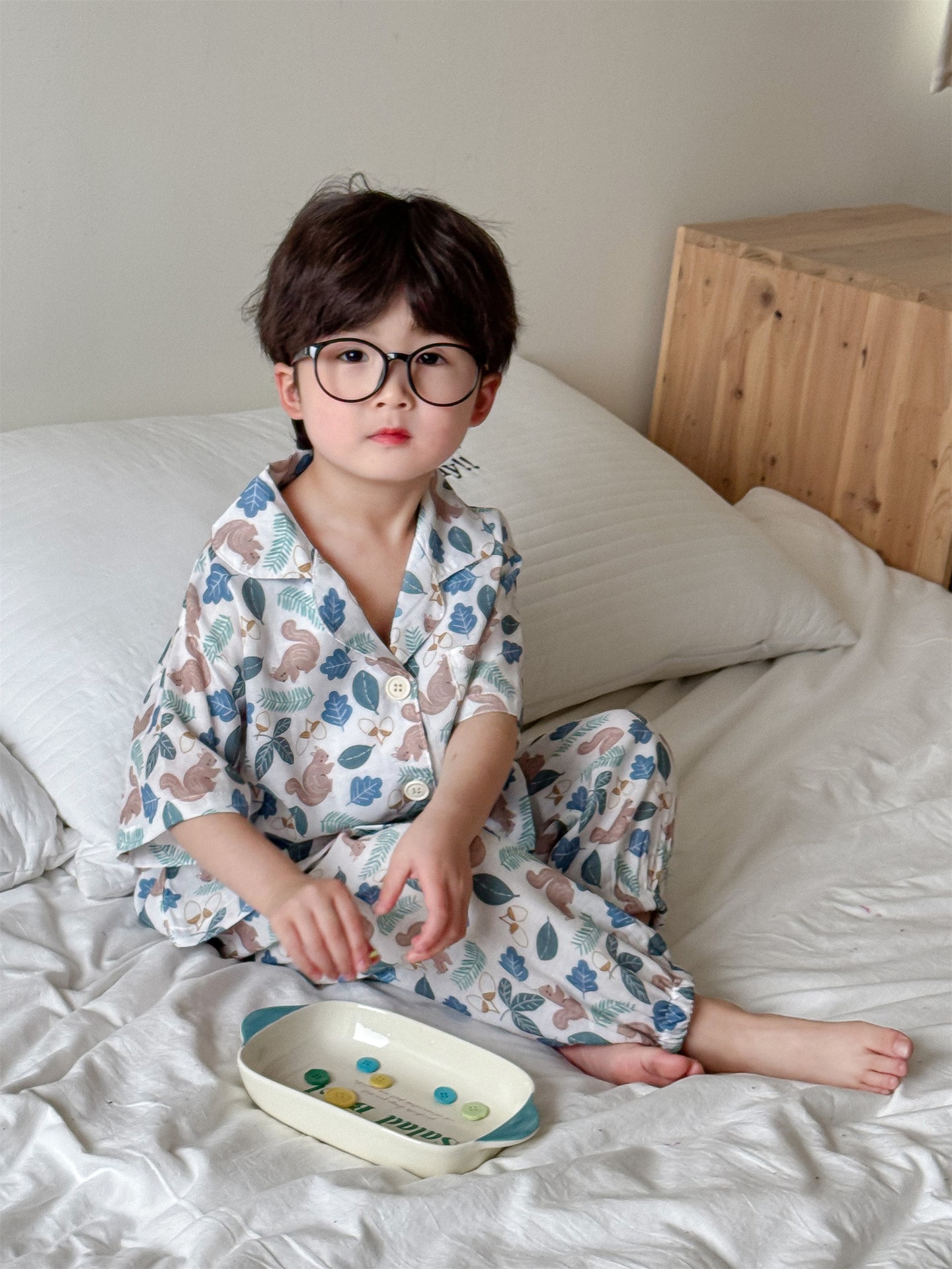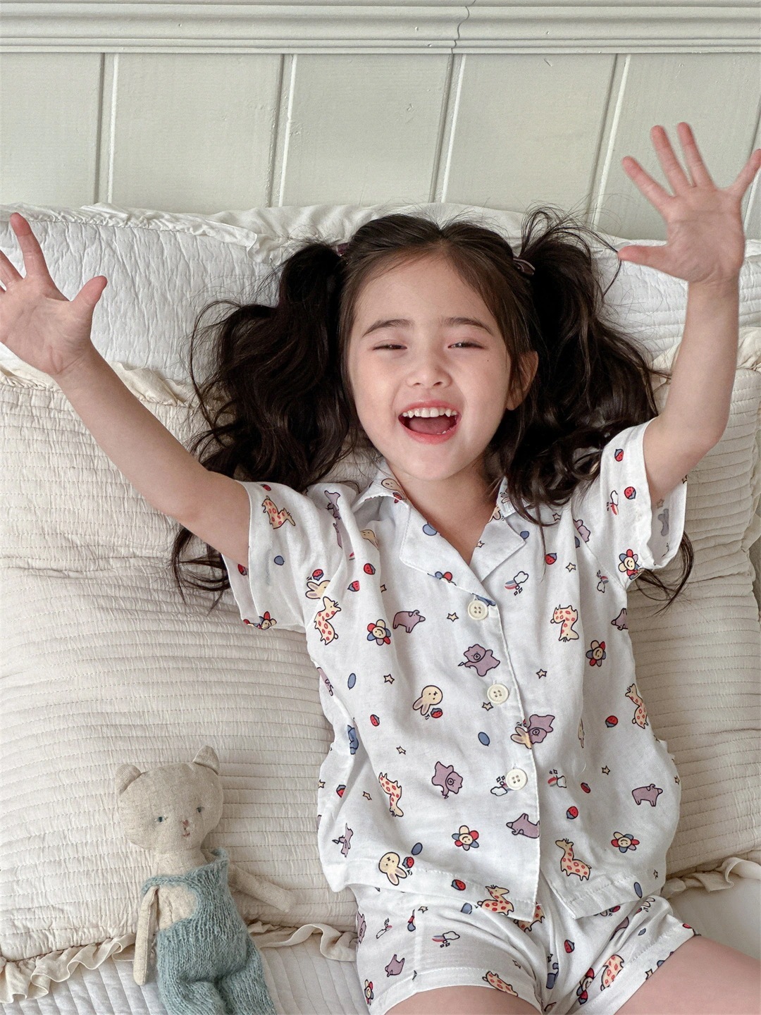【急速出荷】[パジャマ]キッズパジャマ 子供パジャマ夏の半袖ズボンの男の子と女の子のパジャマホームウェアセット