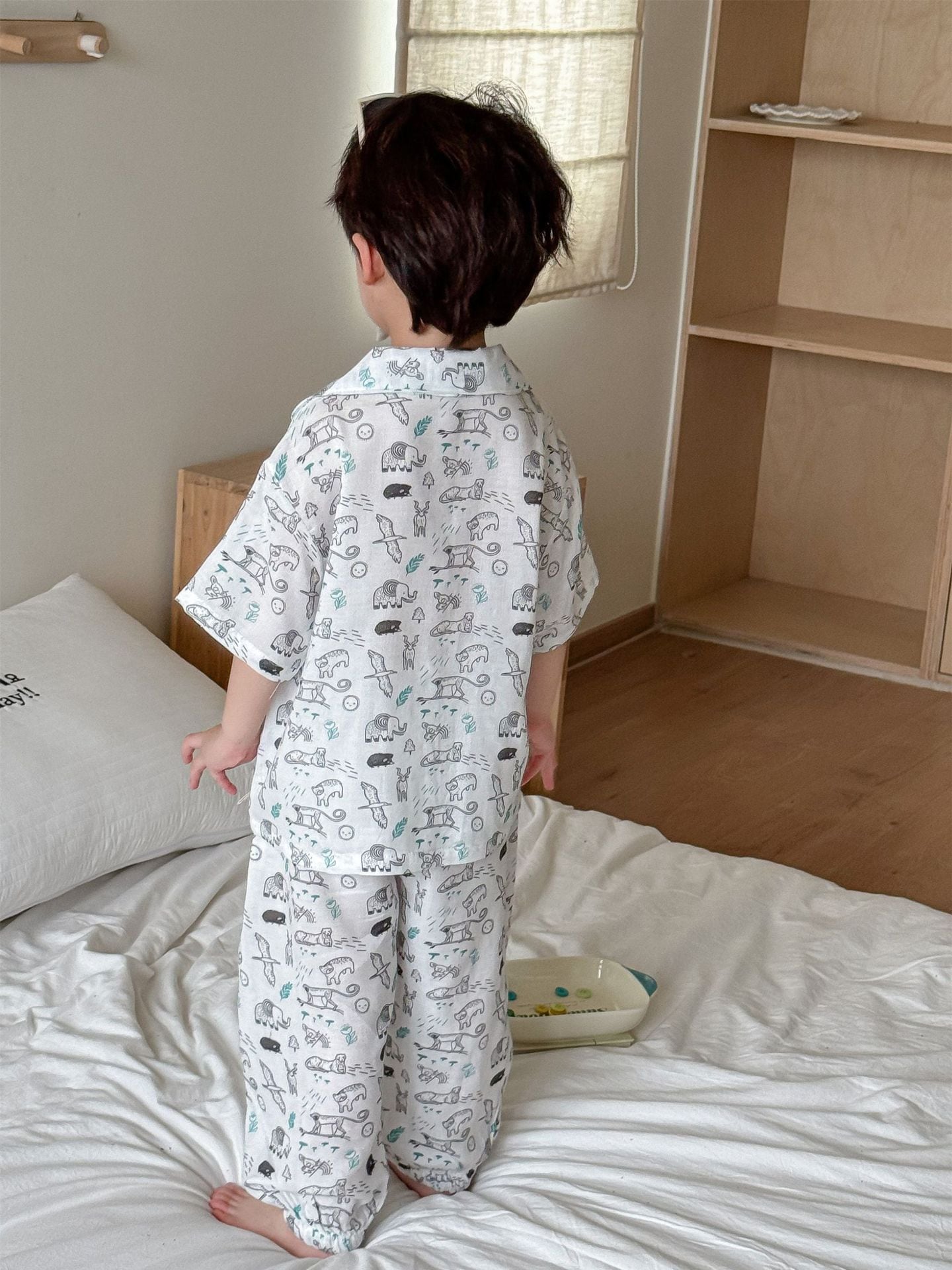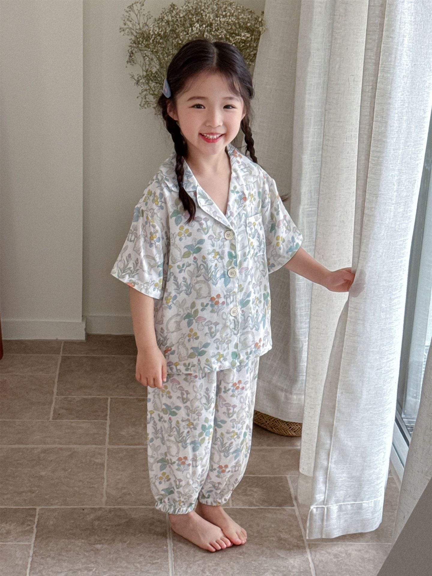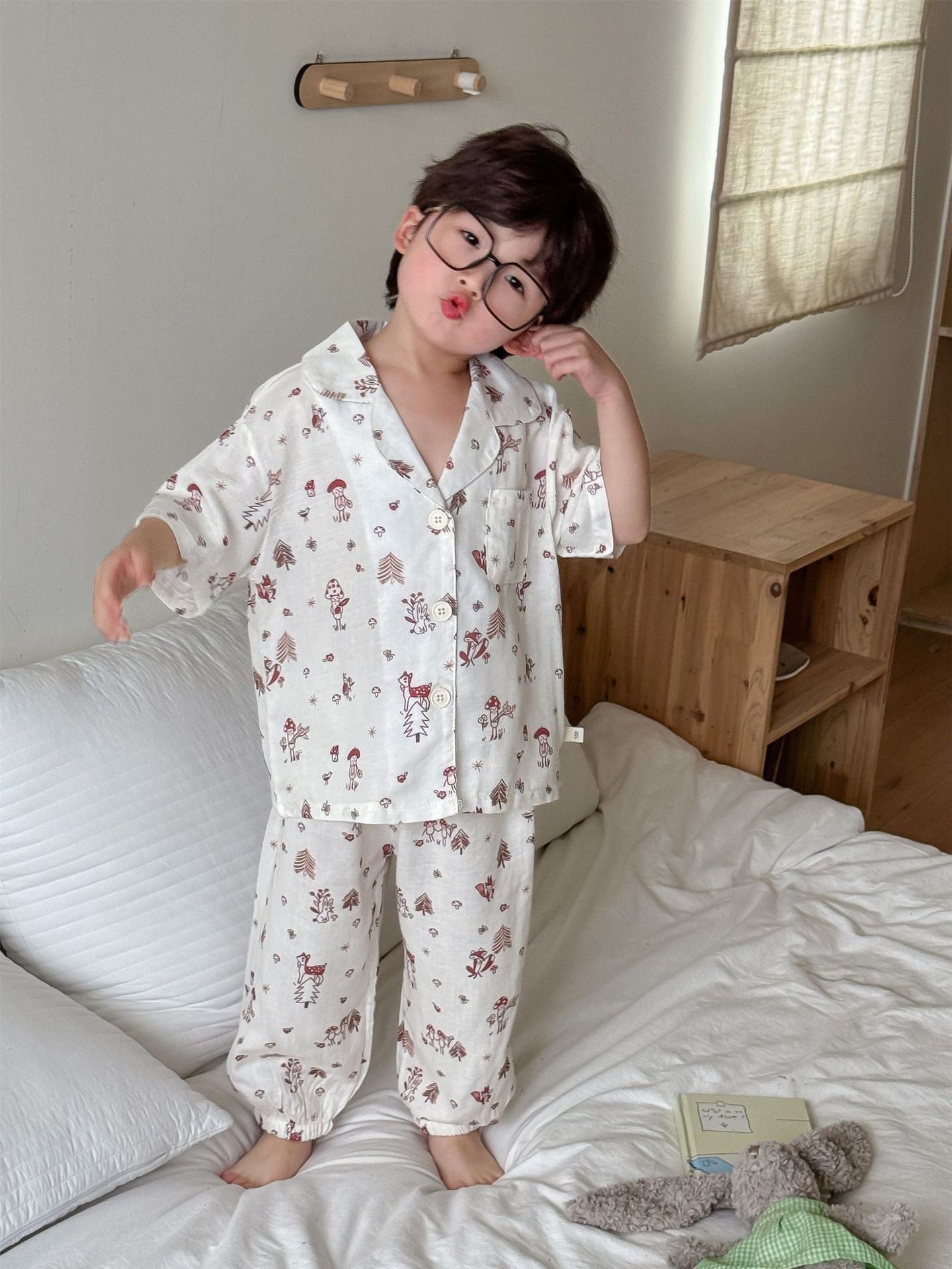 【急速出荷】[パジャマ]キッズパジャマ 子供パジャマ夏の半袖ズボンの男の子と女の子のパジャマホームウェアセット