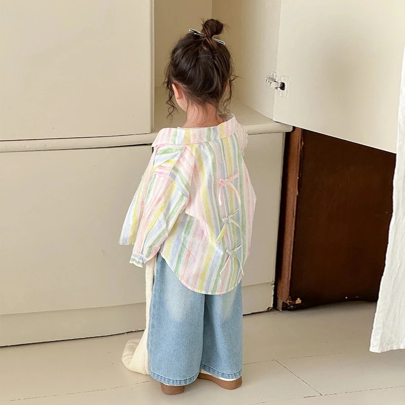 【急速出荷】[子供ブラウス]新作 長袖シャツ Tシャツ 女の子春蝶ネクタイのシャツ2025新しい子供の長袖ブラウスシャツカーディガン
