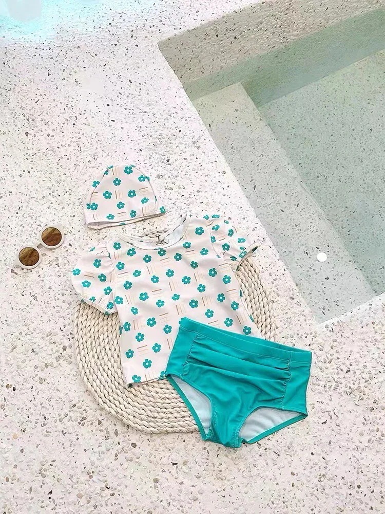 【急速出荷】[子供水着] 新しい子供水着女性スプリット半袖子供水着