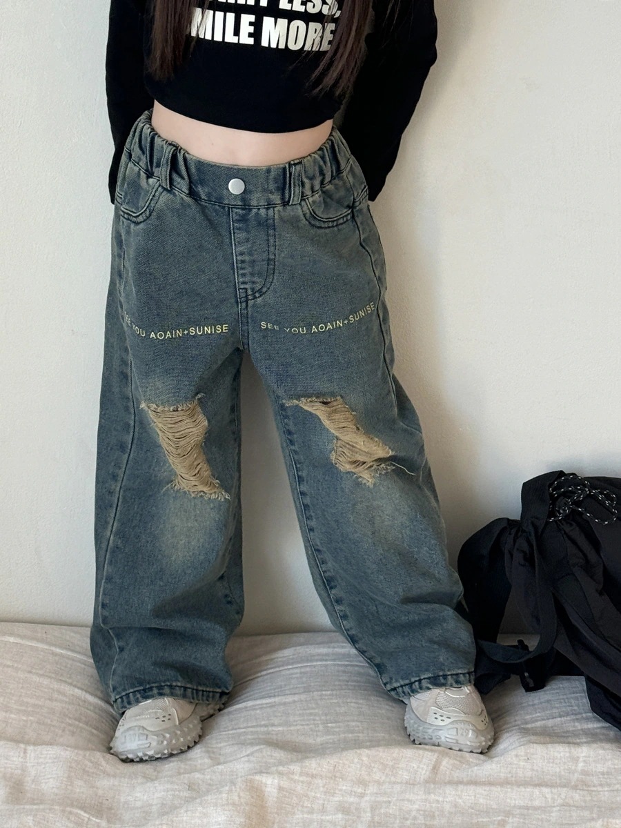 【急速出荷】新追加 大人気 2025春秋 子供服 韓国 パンツ 男の子と女の子の壊れた穴ジーンズ 子供の春と秋の新しいワイドパンツ